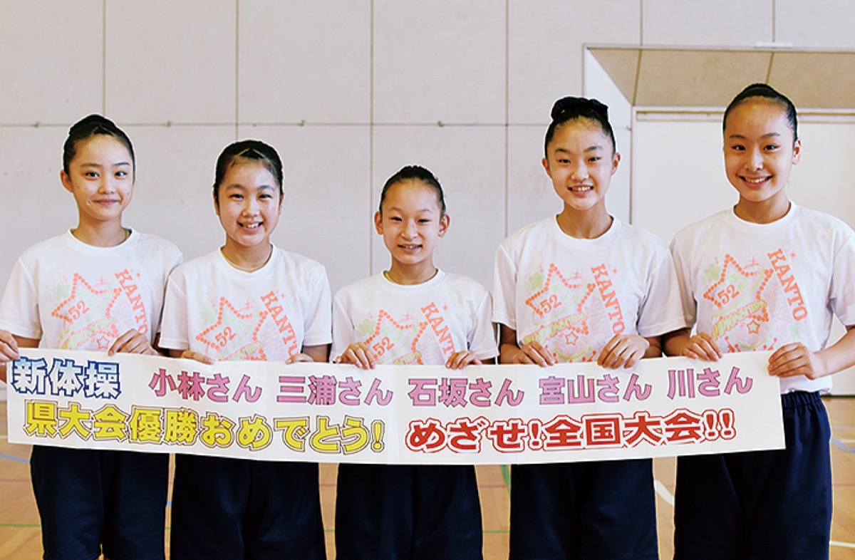 彼女らは区内にある新体操クラブに所属。2年生4人と1年生1人の計5人チームのため、来年も出場資格がある。3年生を主体にするチームが多い中、過去にも県を制覇した実力を持ち、現在は目標の全国ベスト8に向け練習に励む。