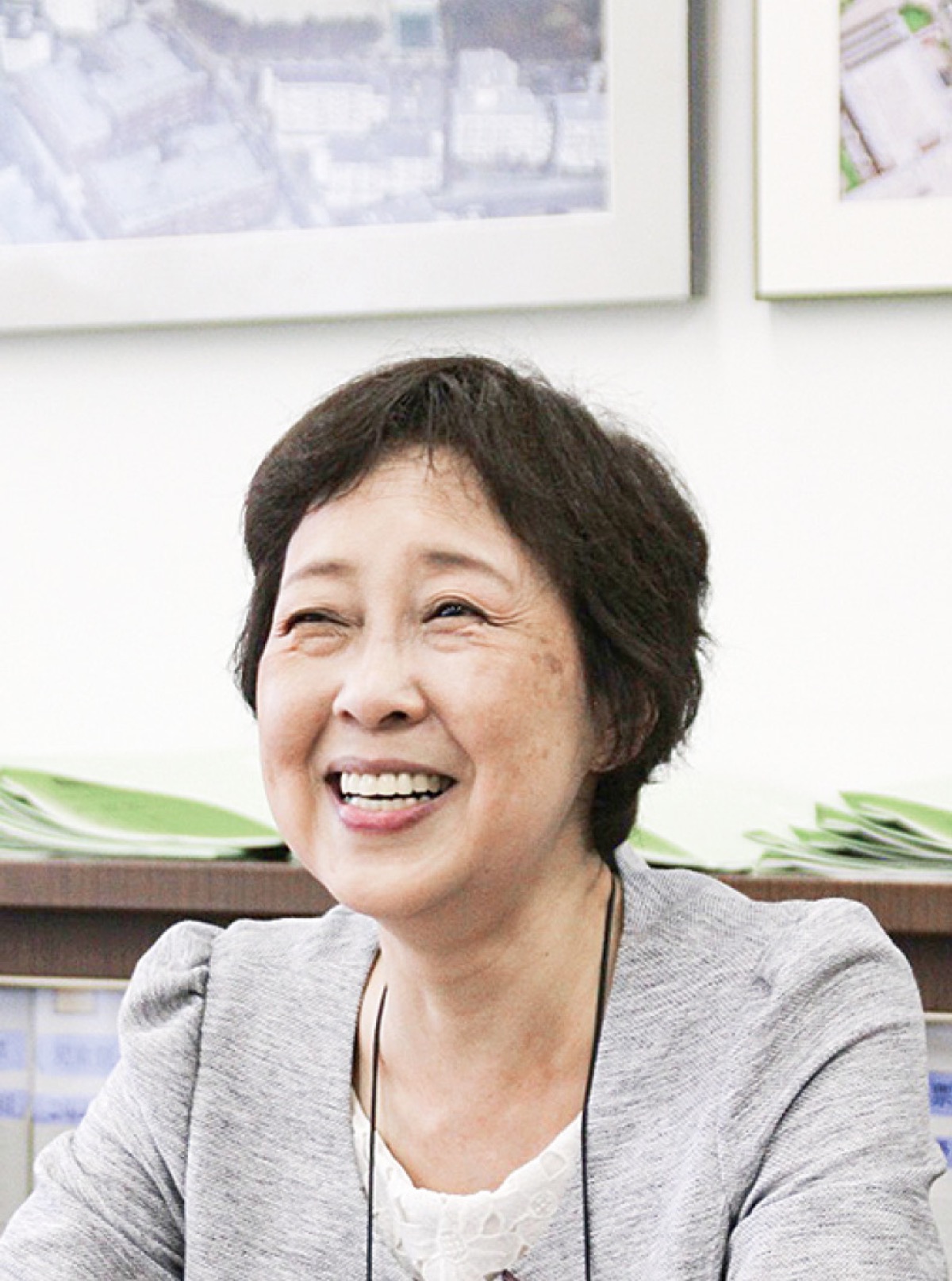 私は、富士見台小学校の白石久美子校長先生を取材しました。先生は、子供の頃から学校の勉強が楽しくて、それから学校の先生になりたいという夢を持ったそうです。また、先生になっていなかったら、何かを作る仕事をしたかったと言っていました。校長先生は、富士見台小学校は千人もの子どもがいるので楽しく、今年は50周年ということもあり、さらに楽しいそうです。