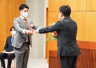 市役所第4庁舎で開かれた表彰式で福田紀彦市長は「これからも安全安心な仕事をしていただき、自分たちのまちの仕事は自分たちでしっかり果たしていく、そして市民生活に貢献するという大きな目的を果たしてもらいたい」と語った。