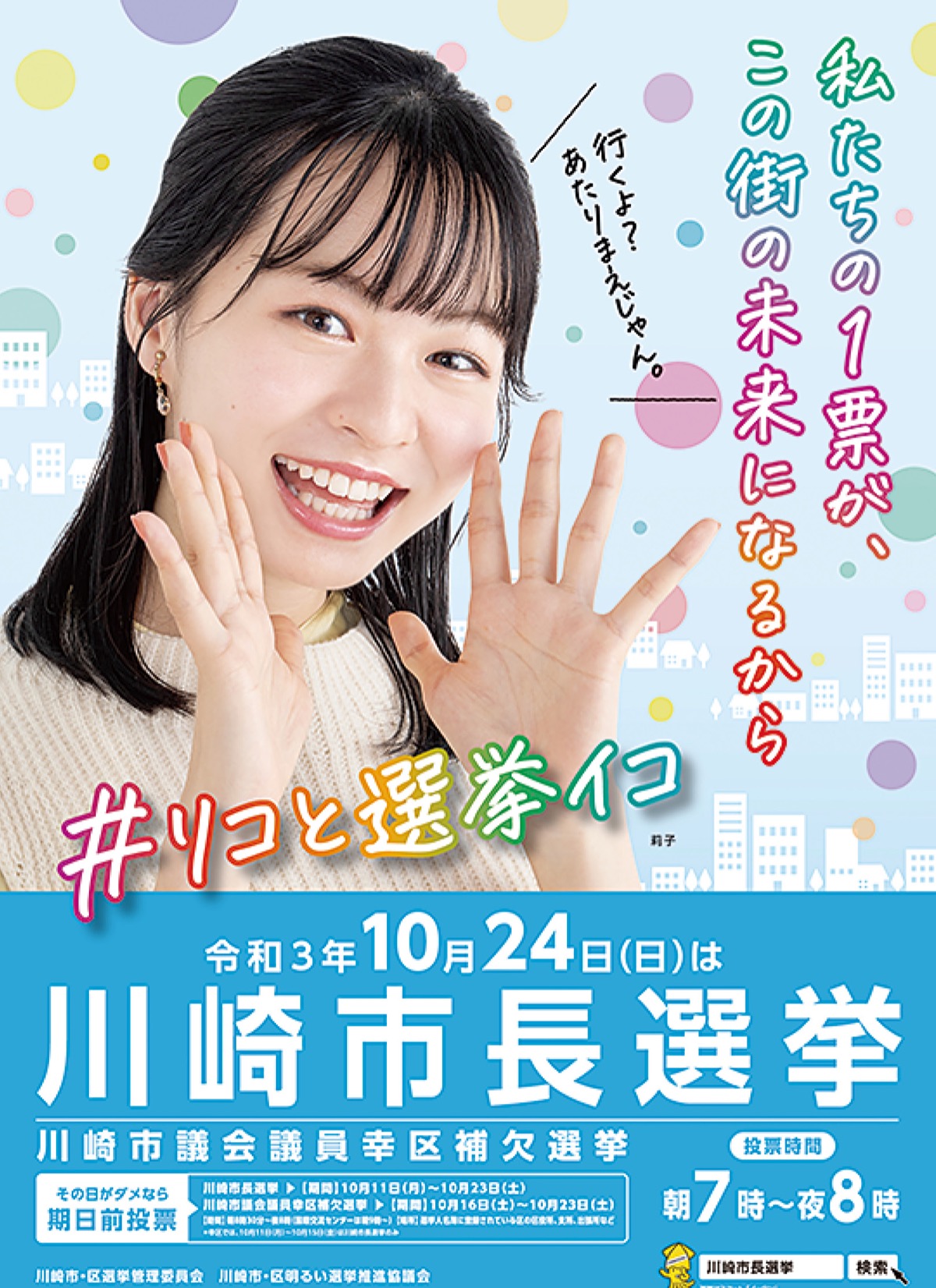 莉子さんは「昨年18歳になり選挙権を持てる年齢を迎え、そのタイミングで川崎市長選挙のイメージキャラクターになれて大変うれしい」とコメントした。