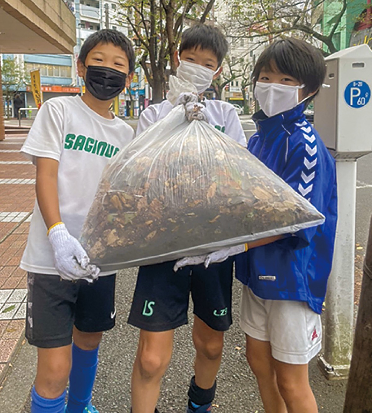 当日は、同町会の関係者や鷺沼小PTA、子ども会、少年野球「鷺沼ヤングホークス」のほか、「地域貢献を学びたい」と少年サッカーチーム「さぎぬまSC」が初参加。総勢120人は、落ち葉やタバコの吸い殻などを拾い、軽トラック2台分のゴミを集めた。