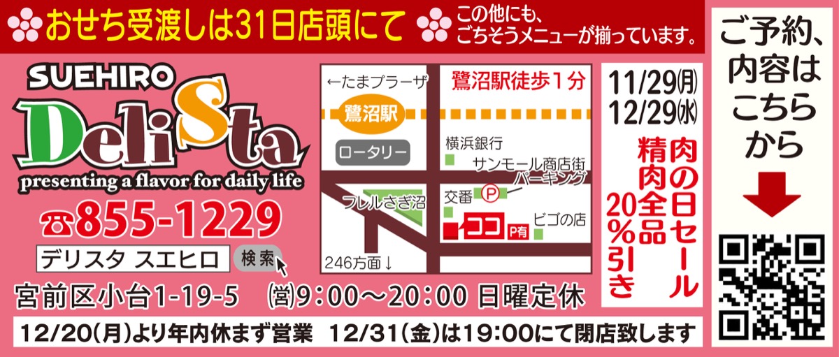 鷺沼駅近くの手作り惣菜と美味しいお肉を扱う『デリスタスエヒロ』が、人気の手作りおせちの予約受付を開始した。