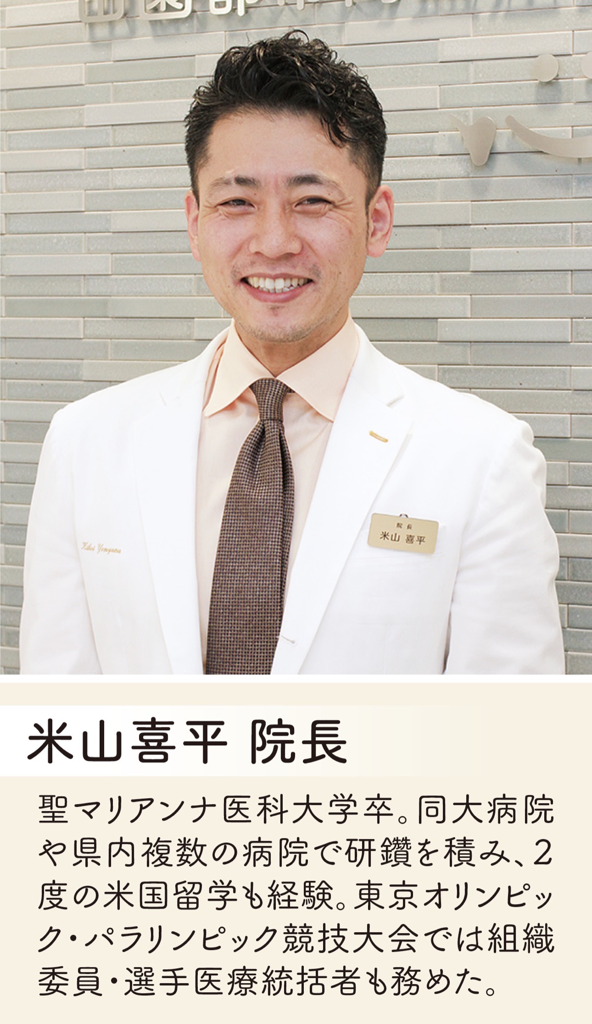米山院長は同大病院で研鑽を積む中で、救急医療や多くの症例、手術に携り、その経験から重症になる前の日頃からの治療が大切と考え、地域に根差した医療を目指して同院を開院した。