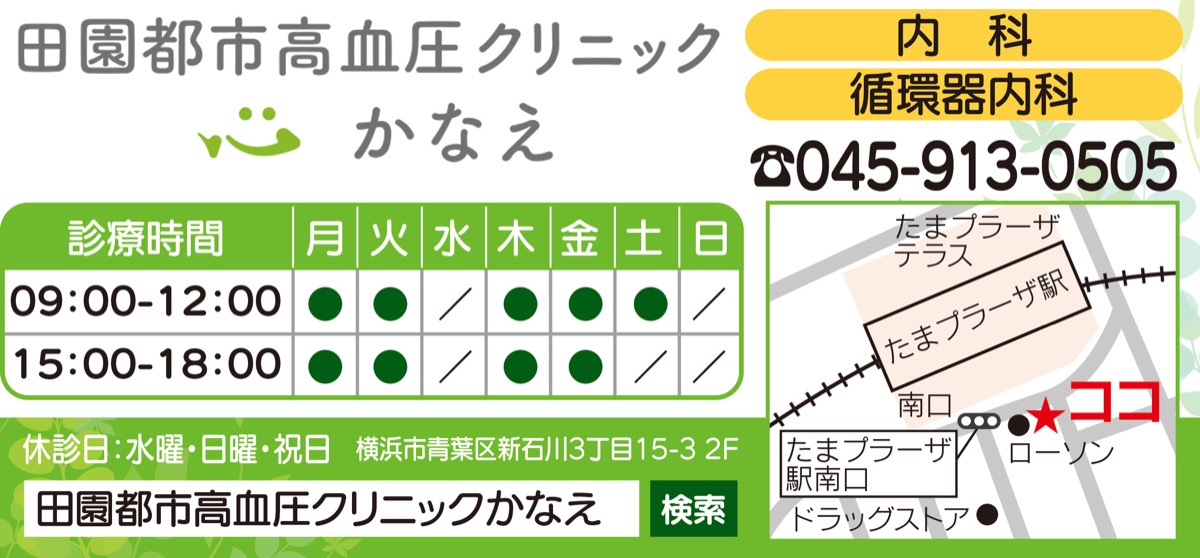 たまプラーザ駅南口徒歩1分に9月1日新規開院した「田園都市高血圧クリニックかなえ」。
