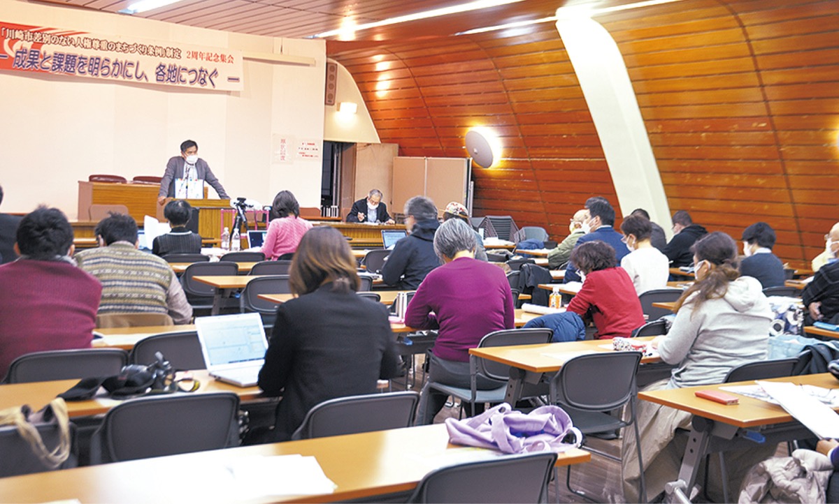 全国で初めてヘイトスピーチに刑事罰を盛り込んだ「川崎市差別のない人権尊重のまちづくり条例」の制定から2年が経過した。川崎市労連会館(川崎区東田町)では12月9日、条例制定後2年間の経過や成果、課題について学ぶ市民集会が開かれた。