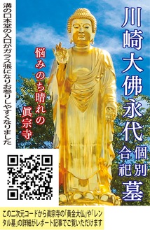 眞宗寺『溝の口本堂』と『川崎霊園』(麻生区)は、僧侶が毎日読経する「永代供養墓」。「遺骨を家に置いたまま」「墓の後継者がいない」「費用はかけられないが供養はしたい」等々お墓に関する悩みを総合的に解消してくれる。