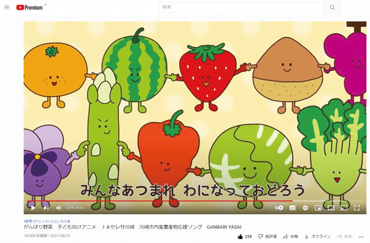 川崎市内産農産物の応援ソング『がんばり野菜』が今月7日、JAセレサ川崎の公式You Tubeチャンネルで再生回数7万回を突破した=写真。