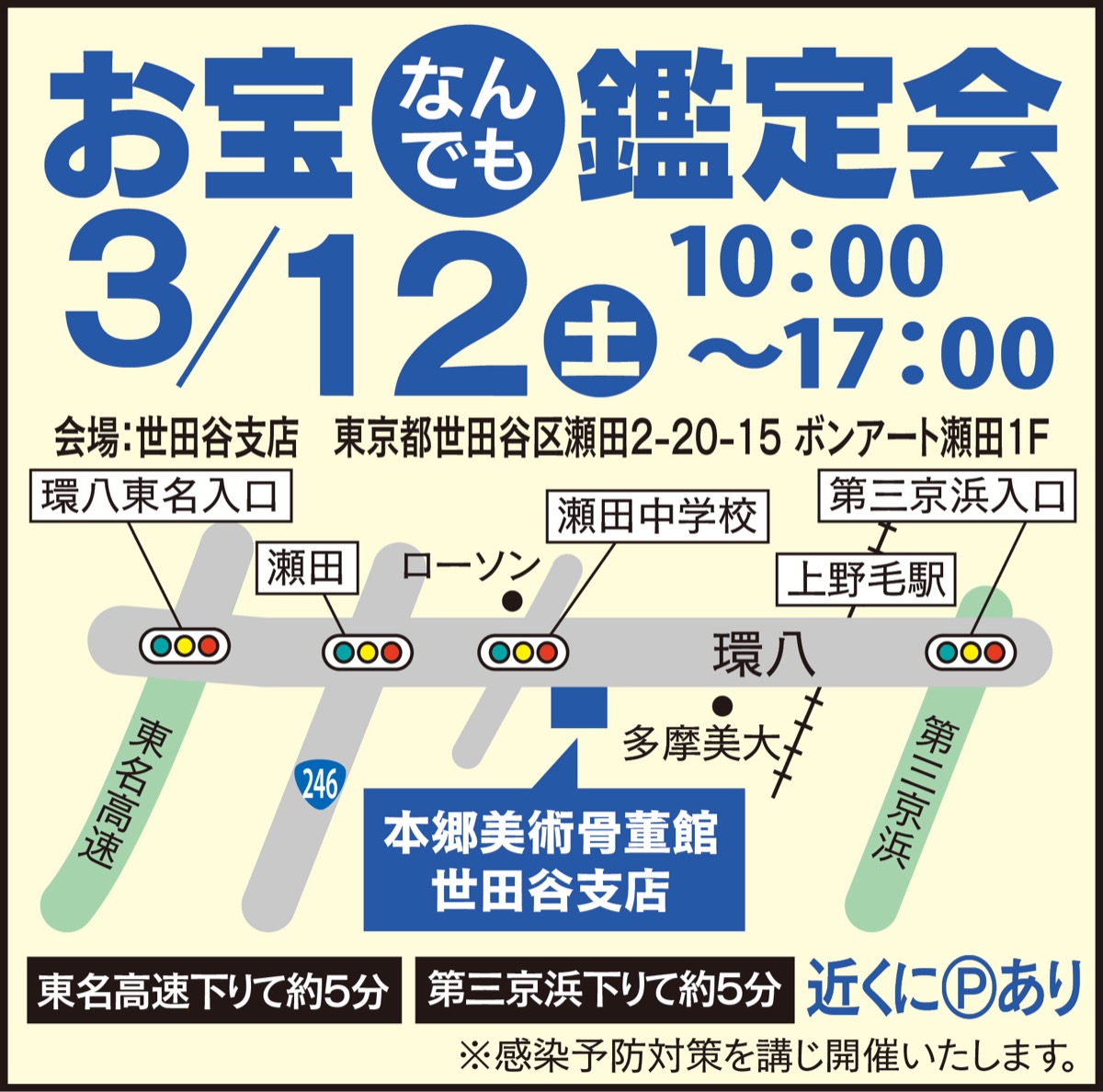 TBSラジオ主催「お宝なんでも鑑定会」が3月12日(土)、本郷美術骨董館 世田谷支店で開催される。鑑定を担当する本郷美術骨董館は、東大赤門前で創業40年になる美術品や骨董品の専門店。経験豊富な各分野の鑑定士が27人も在籍し、様々な提案を行う。現代アート、絵画、茶道具、古美術品等あらゆるジャンルに対応できるのも魅力。TVや新聞、雑誌にも数多くとりあげられているので安心だ。特に中国美術の買取りを強化中。