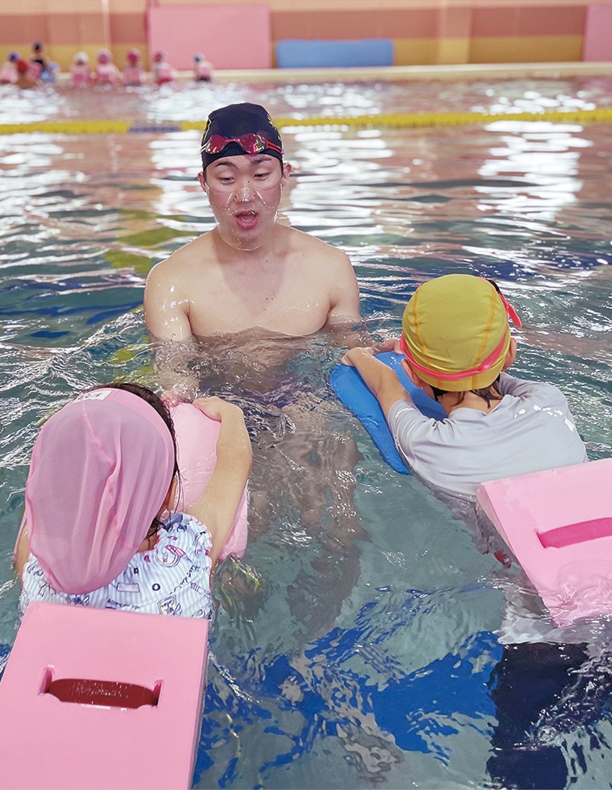 この取り組みは同クラブの社会貢献の一環として行われた。児童数が1000人を超える富士見台小学校では、全員に水泳授業を行うことが難しく、コロナ禍となった2020年から中止となっている。特に、1、2年生は小学校でプールに一度も入ることができていないという。そこで、同クラブは同校の1年生から3年生までの低学年を対象に募集したところ、32人が参加。所属コーチの指導で久しぶりの水泳を楽しんだ。