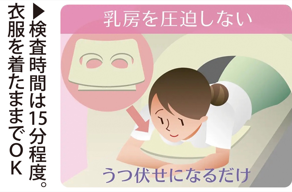 そんな女性の不安に応える「無痛MRI乳がん検診」は服を着たままうつ伏せになるだけで検査可能。結果は放射線科専門医が読影し、2〜3週間後に郵送される。費用は2万2千円(税込)。