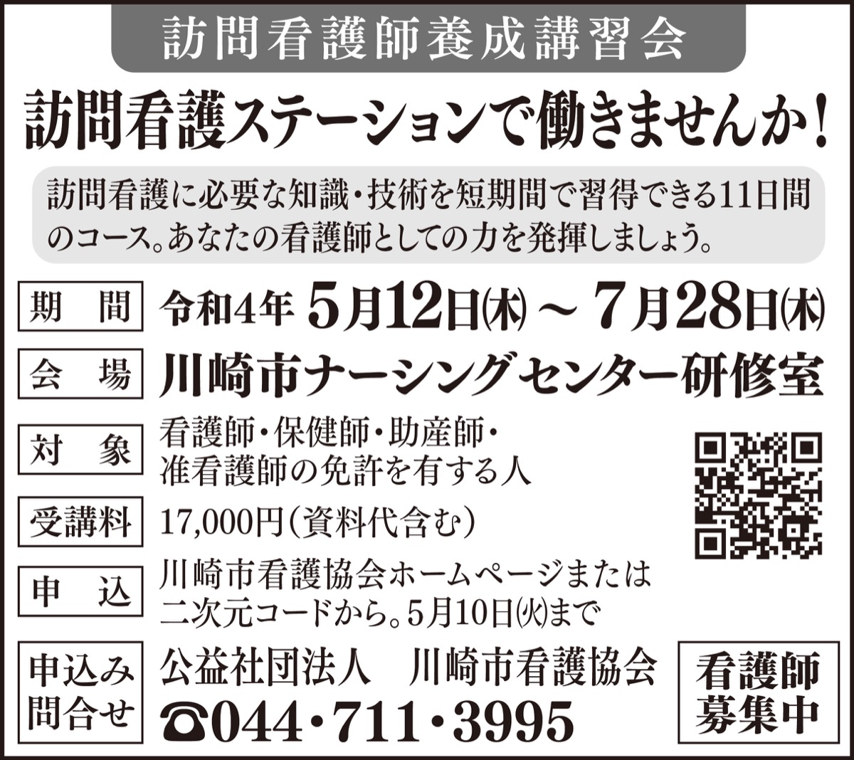 「病院をはじめ高齢者施設、保育所など看護師のニーズは多様です。特に地域完結型の医療体制では、訪問看護師は必要となります。川崎市は今年4月、看護大学を開学し人材確保と育成を強化しています。また資格があっても働いていない方も多いです。責任が重い仕事ですので、処遇改善が必要だと感じます」