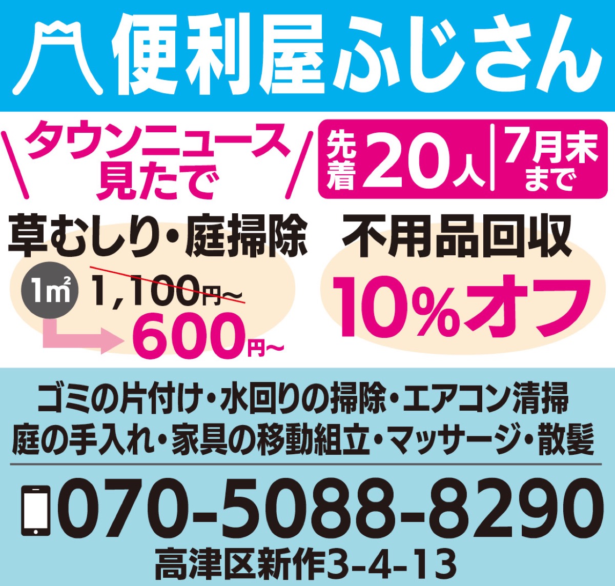 草むしりや不用品回収など暮らしの「困った」があったら「便利屋ふじさん」へ。宮前・高津を中心に地域密着で迅速・親身な対応が評判だ。地元で整骨院や訪問マッサージ、障害者施設などを運営する代表の藤井さん。日常の困りごとにも対応しようと昨年4月、便利屋を開業した。