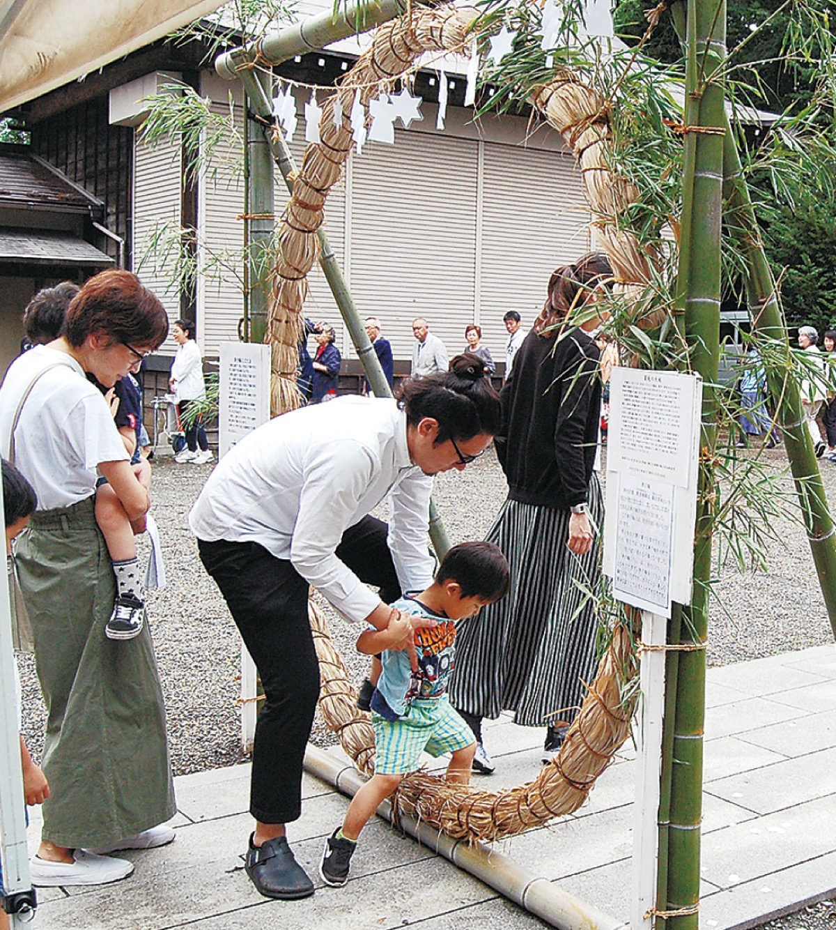 八の字を描きながらくぐり、今までの穢れを祓い、これからの無病息災を祈る。一年の前半の晦日、29日(水)には「夏越の大祓」が神事のみ行われる。(問)同神社【電話】044・777・0288