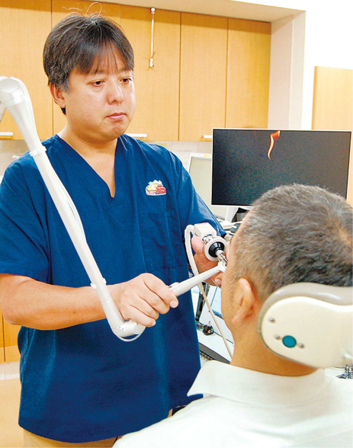 レーザー治療とは鼻の粘膜にレーザー光を照射し、アレルギー反応を抑える治療。鼻づまり・鼻水・くしゃみなどの症状の緩和に高い効果と持続性が期待できるという。「痛みや出血もほとんどありません。効果を実感して定期的に施術される方も多くいらっしゃいます。安心して治療をうけていただきたい」と菅野院長。