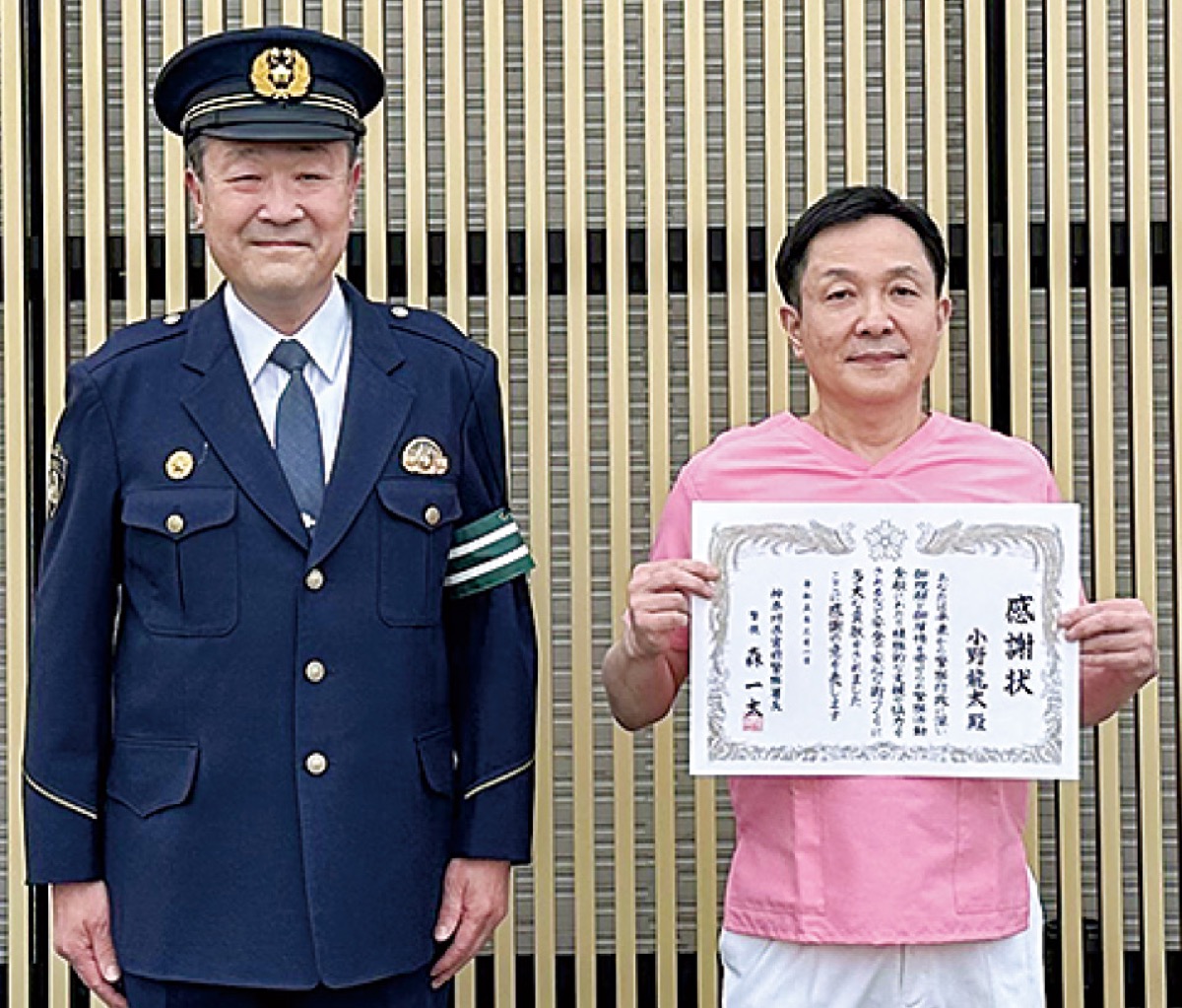 医療法人ひまわり会神奈川ひまわりクリニックの小野龍太理事長に3月1日、宮前警察署(森一太署長)から、感謝状が贈られた。