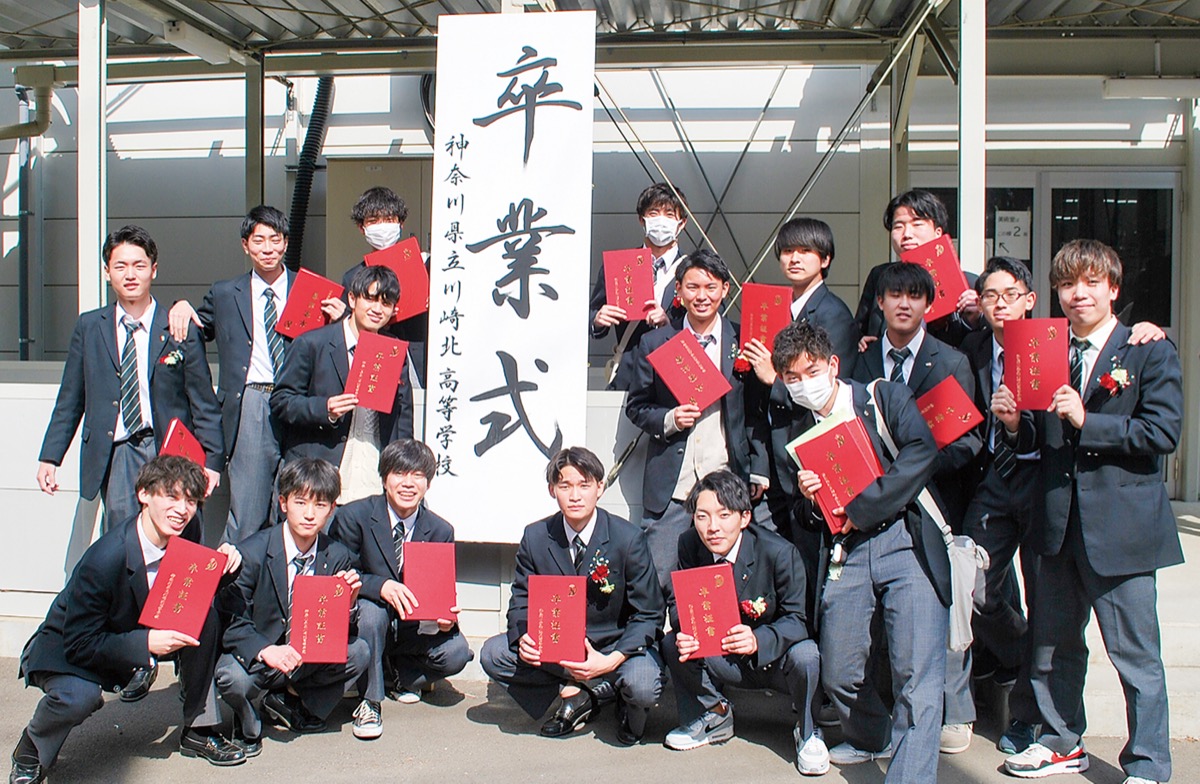川崎北高校で3月2日、卒業式が執り行われ、281人が門出を迎えた。卒業式は国の方針で、新型コロナウイルス対策のマスクを外すことが基本となった。学校側は式典後に歌う時等は着用とし、それ以外を生徒の自由判断に委ねた。実際、式でのマスクを外していた生徒の数少なかったという。卒業生からは「笑顔を見れて良かった」という声があった一方、「最後だけ外していいと言われても、今更感しかない」、女子生徒からは「外すのが恥ずかしい」などの声もあった。岩崎道子校長は「制限多く不安を抱えながらも地道に学び続けたことを財産に、全ての人の幸せにつなげてほしい」と労い、エールを贈った。