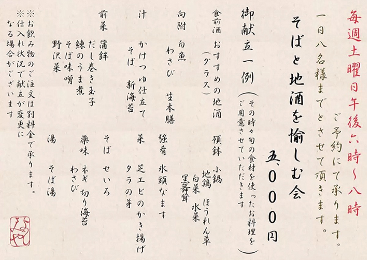 創業60年の老舗そば屋「よしみや」が、一日8名様限定で土曜日夜の特別企画を始めた。