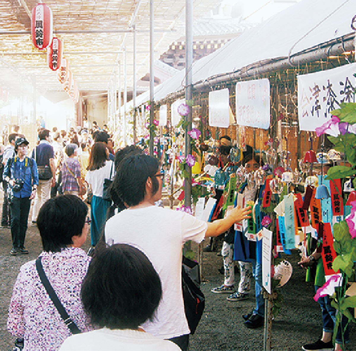 川崎大師オリジナルの「厄除だるま風鈴」をはじめ、「北海道のどさんこ風鈴」、「長崎瑠璃風鈴」など、全国の風鈴が楽しめる。初日となる17日は、開会式法楽が行われ、神奈川トヨタの特別企画として1955年(昭和30年)製の初代クラウンなどが展示される(午前11時から午後4時)。20日(木)には、大師地区町内会踊り子連約200人による踊り練り込みが行われる(午後5時から6時)。