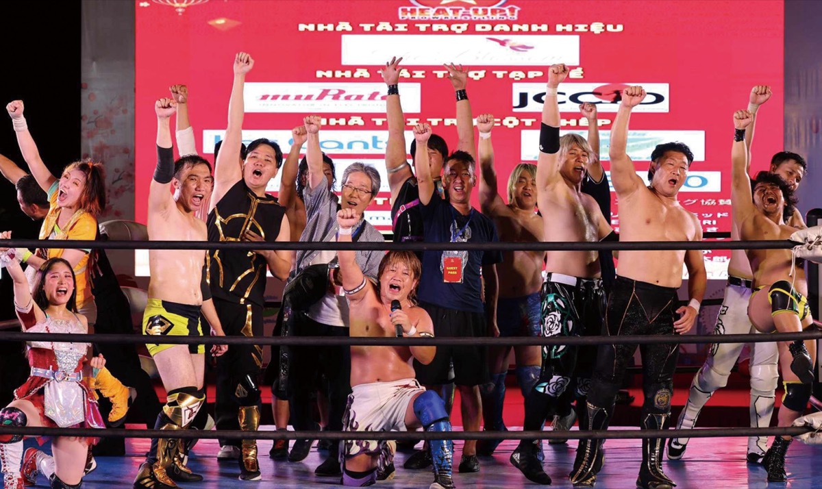 野川中学校(3年)の佐藤大地選手が所属するプロレス団体「ヒートアップ」(多摩区)は、ベトナムで7月13日から16日まで行われた「ダナン市日越文化交流フェスティバル」に参加し、プロレスを披露して現地の人たちと交流した。代表のTAMURA選手は「プロレスを通じて勇気や希望を届けられた。今後も交流していきたい」と思いを話した。