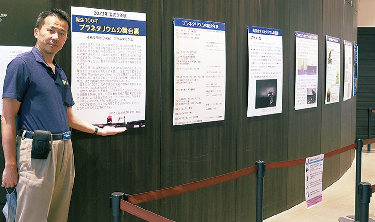100周年を記念した企画で、1階展示室壁面には国内でのプラネタリウムの設置の歴史や同館の歴代プラネタリウムを紹介するパネルも並ぶ。