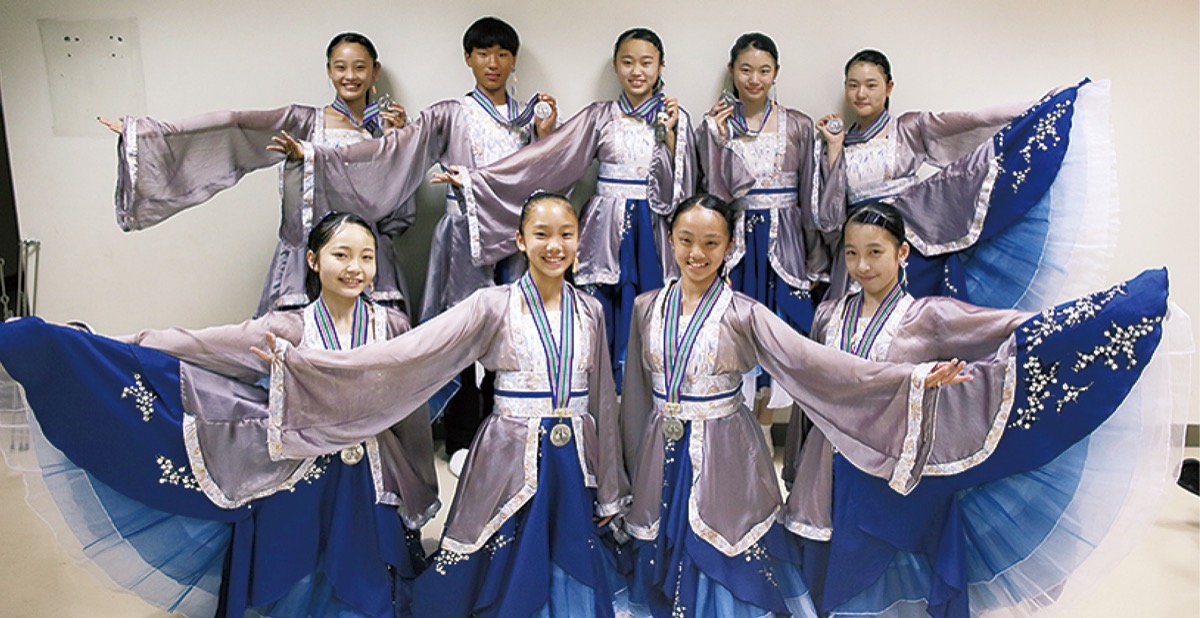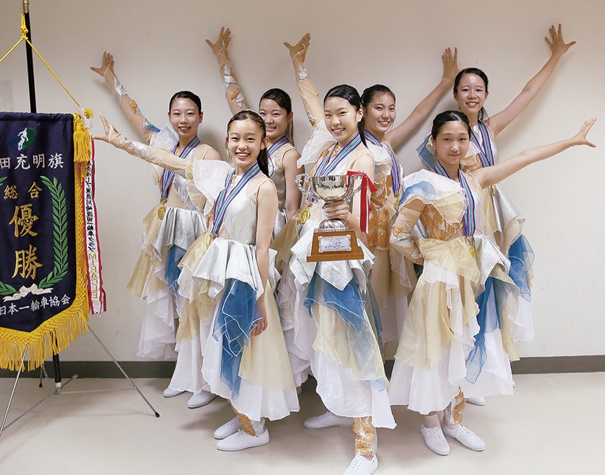一輪車に乗りながら、音楽に合わせてジャンプや回転技を組み合わせ、出来栄えを競う一輪車演技。ペアとグループ対象の全国大会が7月に群馬県高崎市で行われ、宮前区内の一輪車チーム、ユニサイクルのがわ「ミル・クレール」が、グループ部門の総合優勝に輝いた。同チームの総合優勝は1992年の創設以来、初めて。