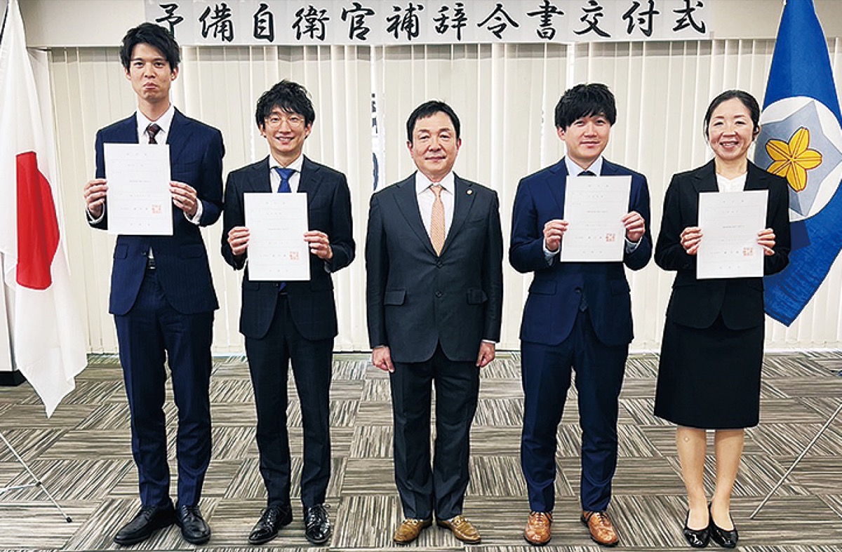 神奈川ひまわりクリニック(小野龍太院長)の職員4人が7月30日、自衛隊神奈川地方協力本部で予備自衛官補辞令書交付式に参加した。