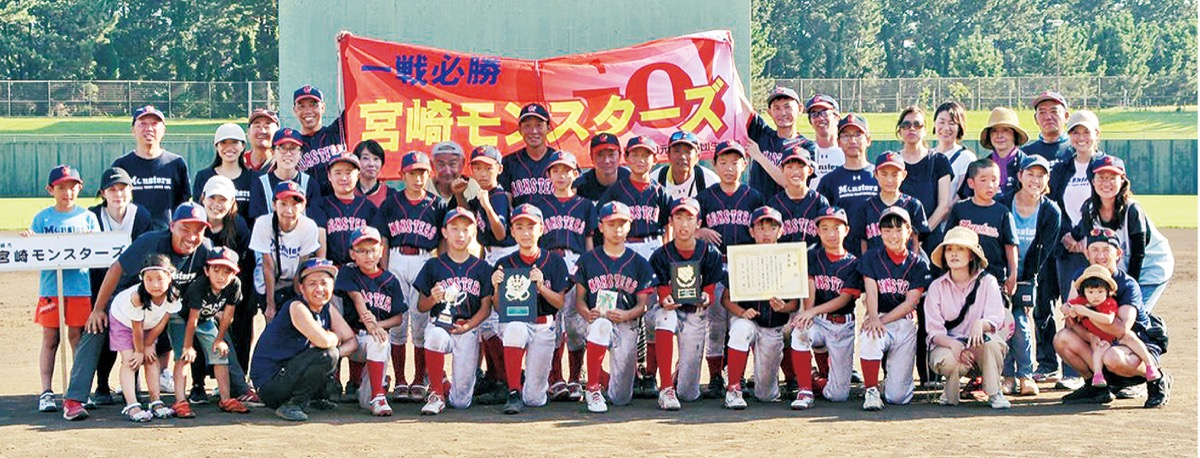 同大会には、県内の各地区から推薦された24チームが参加。宮崎モンスターズは1974年に、宮崎町内会子ども会の野球チームとして創設。現在は「文武両道」をモットーに、35人のメンバーが体力や実力に合わせて活動している。