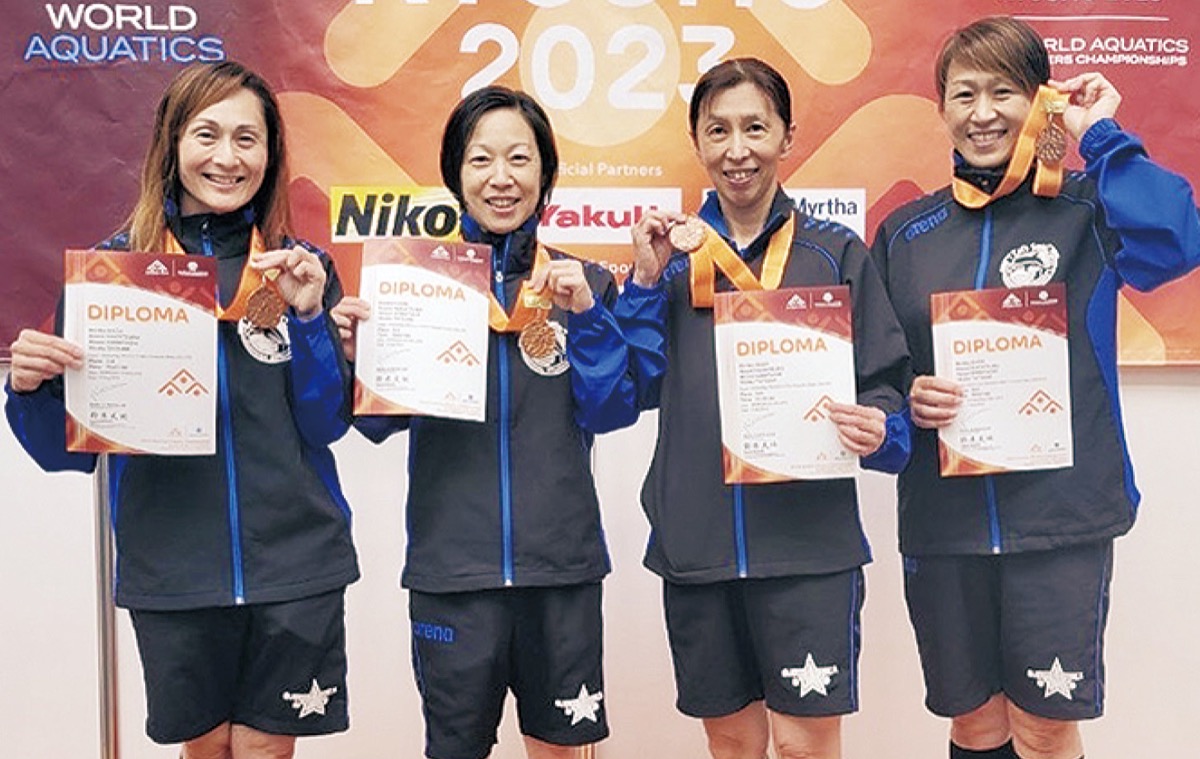 土谷さんは、25年前から同クラブに所属し、選手やコーチとして活動してきた。高校3年生の夏には同種目で県大会を制覇。現在もパイロットとして働きながら水泳を続けている。「世界大会は初めてだったが、クラブの皆さんと参加することで、とても素敵な思い出を作ることができた」と喜びを語った。