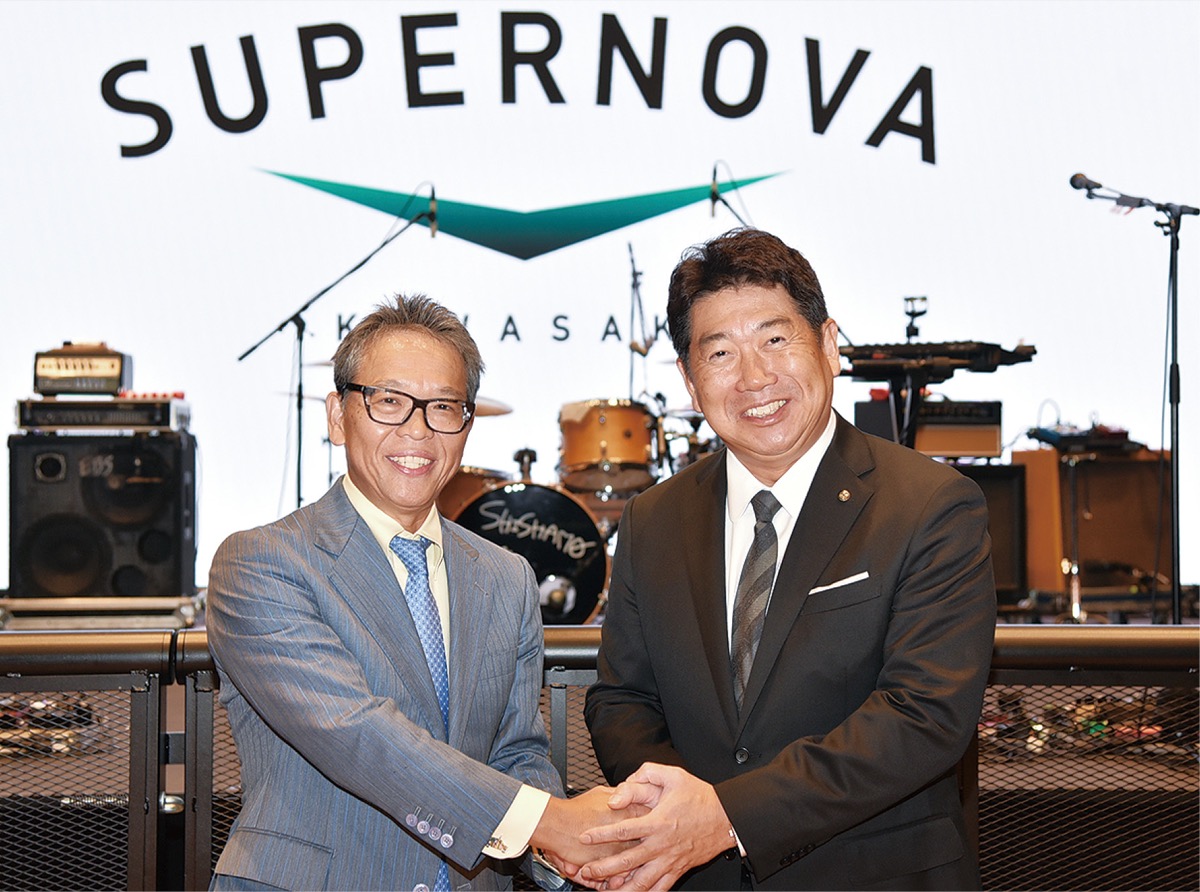 福田市長は「川崎市は若者の挑戦を全力で応援している。その大きな拠点となるのがスペルノーヴァ。力を合わせ盛り上げていきたい」と期待を寄せ握手を交わした。