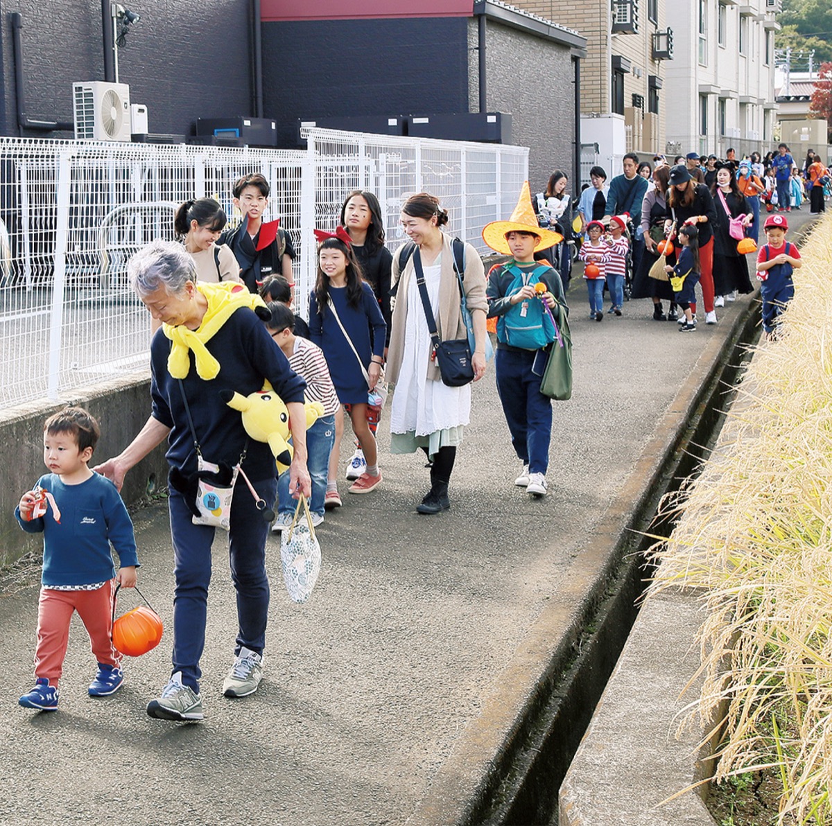 平子ども会により初開催。放課後等デイサービス「ウイングみやまえ」が合同企画した。当日は未就学児から中学生までの子どもと保護者、ウイングみやまえの利用者ら100人以上が参加。アニメや映画のキャラクターに扮した参加者は、向丘出張所を出発し、野川柿生線沿いや平瀬川沿いを通り、企画の賛同者や企業など7カ所を訪問。「トリック・オア・トリート」と言って、訪問先でお菓子をもらった。参加した女児は「たくさん回って疲れたけど、たくさんお菓子をもらえてうれしかった」と笑顔を見せて話した。
