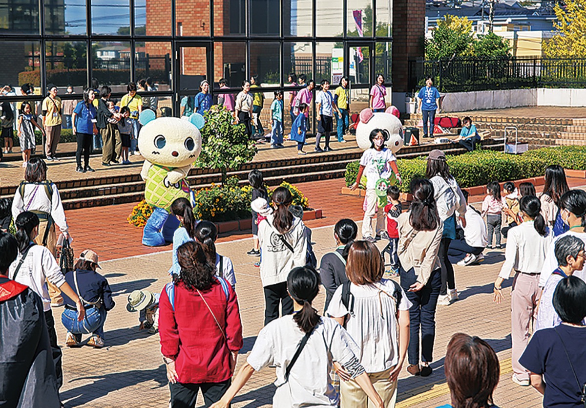 当日は、区役所前広場で行われたリコーダー演奏で幕開け。宮前区PRキャラクターのメローとコスミンも登場し、来場者や出展関係者が、「だいすき! メロコス体操」を行い、一緒になって体を動かした。