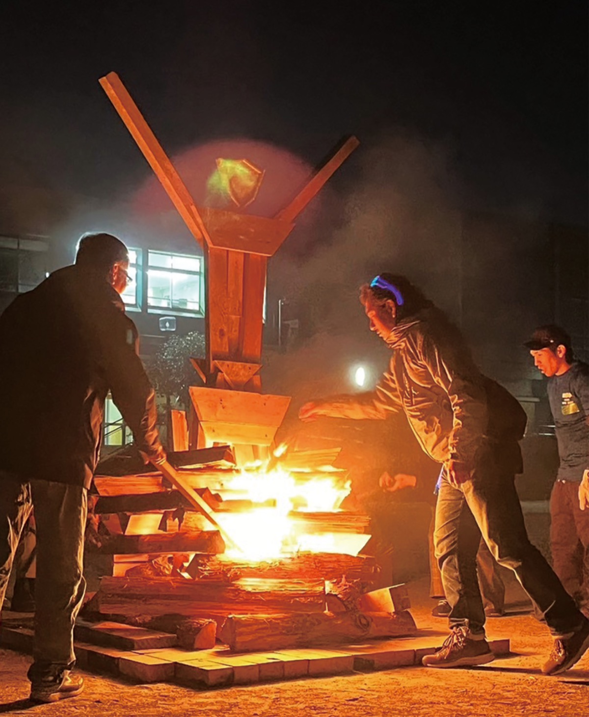 稗原小学校父の会パワーズ(平部憲一代表)は11月25日、「ひえばらキャンプ」と銘打った防災イベントを同校で開催した。4年ぶりに宿泊体験を実施。キャンプファイヤーには人型の造形物「バーニングマン」が登場し、参加者の願いを込めて燃やされた。