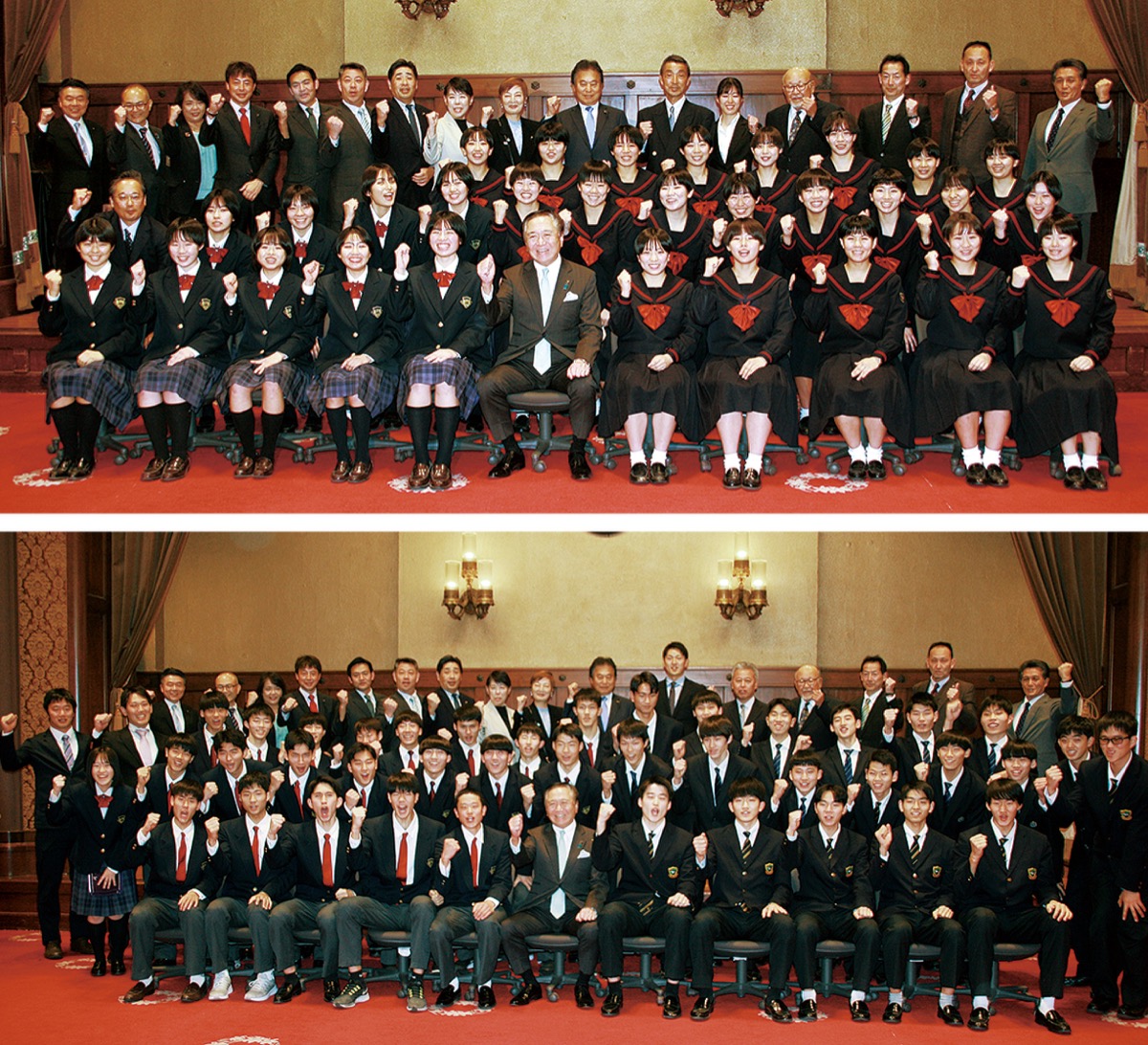 「春高バレー」は、黒岩知事ゆかりのテレビ局で長きにわたって放映されており、「皆さんの健闘を心から期待している」とひと際心のこもったエールが贈られると、メンバーたちは決意を新たにした。記念撮影では、「ビクトリー!」という掛け声と共にガッツポーズをとる、県庁では縁起が良いとされるスタイルでフレームに収まり、晴れやかな表情をみせていた。
