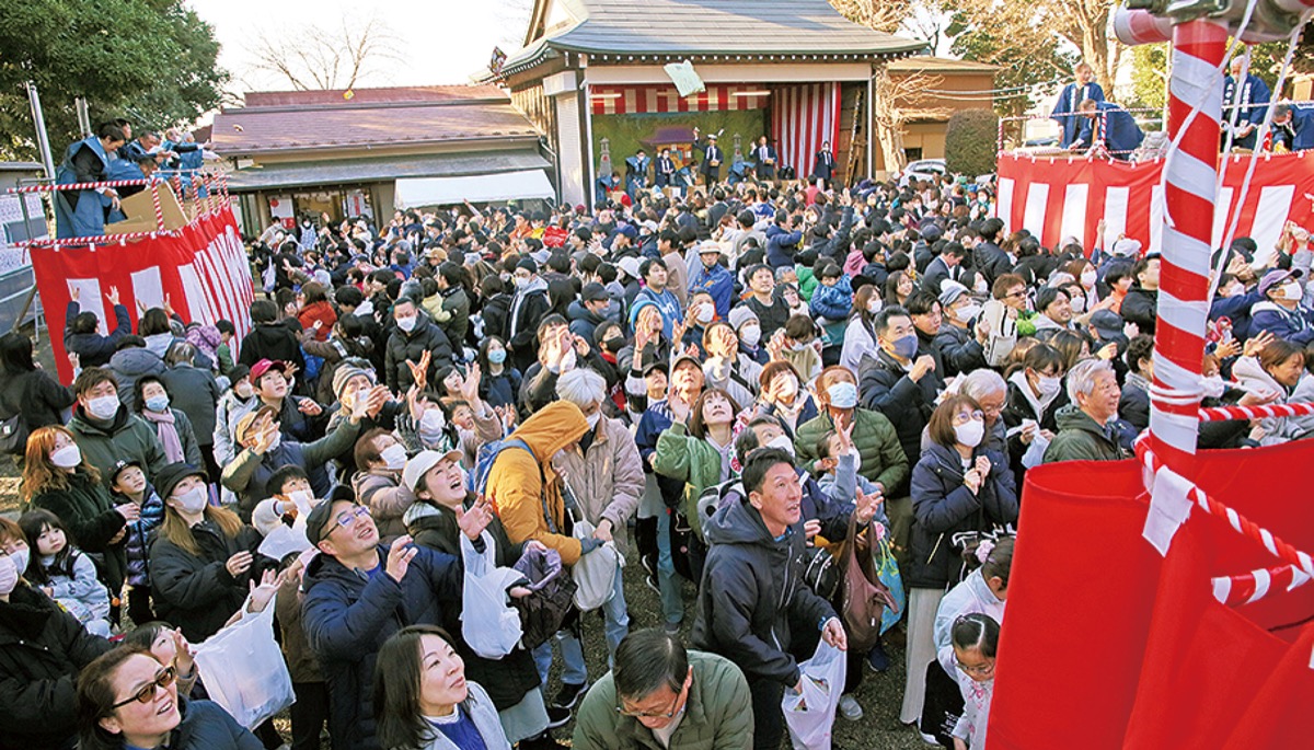 野川本町の野川神明社で2月3日に節分祭が開催され、4年ぶりに豆まきが行われた。