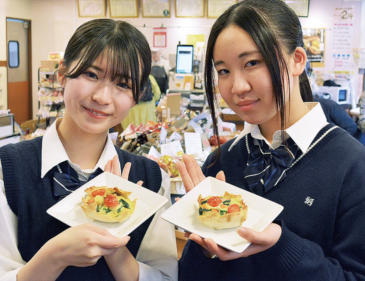 商品化されたのは、高校生以下対象のジュニア部門で優秀賞に選ばれた「野菜たっぷりミニキッシュ」。県立新城高校(中原区)家庭科部の高岡伶奈さん(2年)と真家愛奈さん(1年)が考案した。