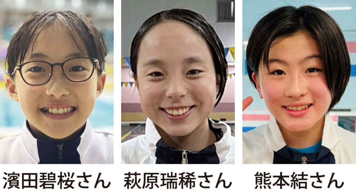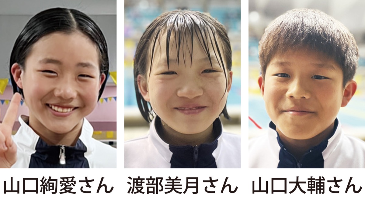 【サギヌマスイミングクラブ宮前平】▽萩原瑞稀 (宮前平中1年)50m自由形・100m自由形・100m背泳ぎ▽濱田碧桜(犬蔵小4年)50m平泳ぎ・50m背泳ぎ▽山口大輔(土橋小4年)50m自由形▽渡部美月(宮前平小5年)50m平泳ぎ▽山口絢愛(土橋小6年)50m自由形・100m自由形