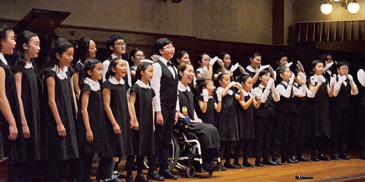 同団は聴覚や視覚など障害の有無に関係なくどんな子どもも参加できる、インクルーシブな合唱団。歌で表現する声隊と、手話がベースの「手歌」で表現するサイン隊が同じ舞台に立ち、一つの作品を作り上げる。白い手袋を着用して表現することが「ホワイトハンドコーラス」の由来だ。東京、京都、沖縄の3拠点で活動を行っている。