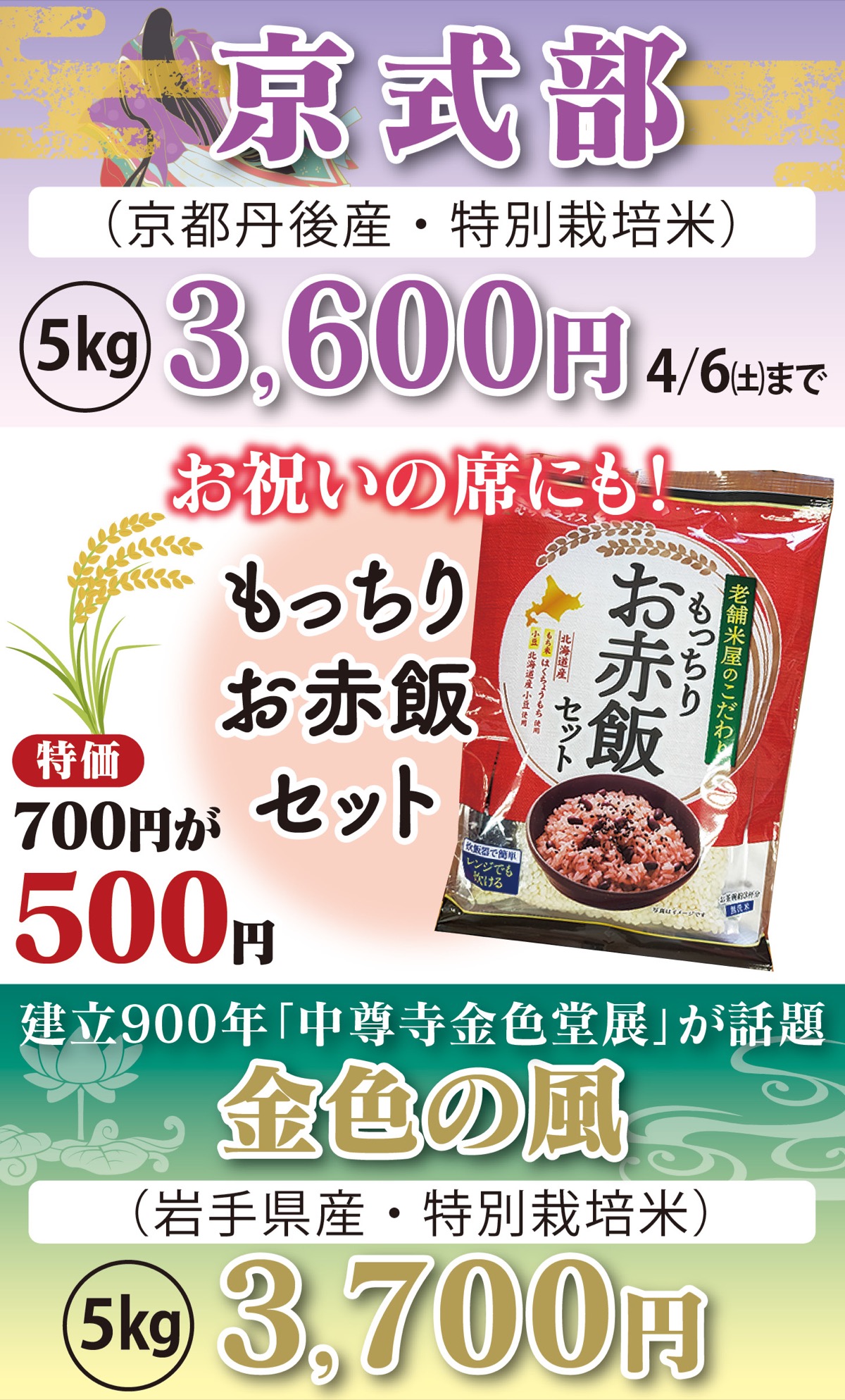 話題の大河ドラマ「光る君へ」で注目される京都で2020年に誕生した新品種『京式部』も昨年から取り扱う。香りの良さ・白いつや・甘みが特徴だ。岩手県産「金色の風」はふわりと軽く、甘みが強く、バランスが良いと評判。「県内でも購入できる店は少ないので、ぜひお試しください」と小嶋さん。