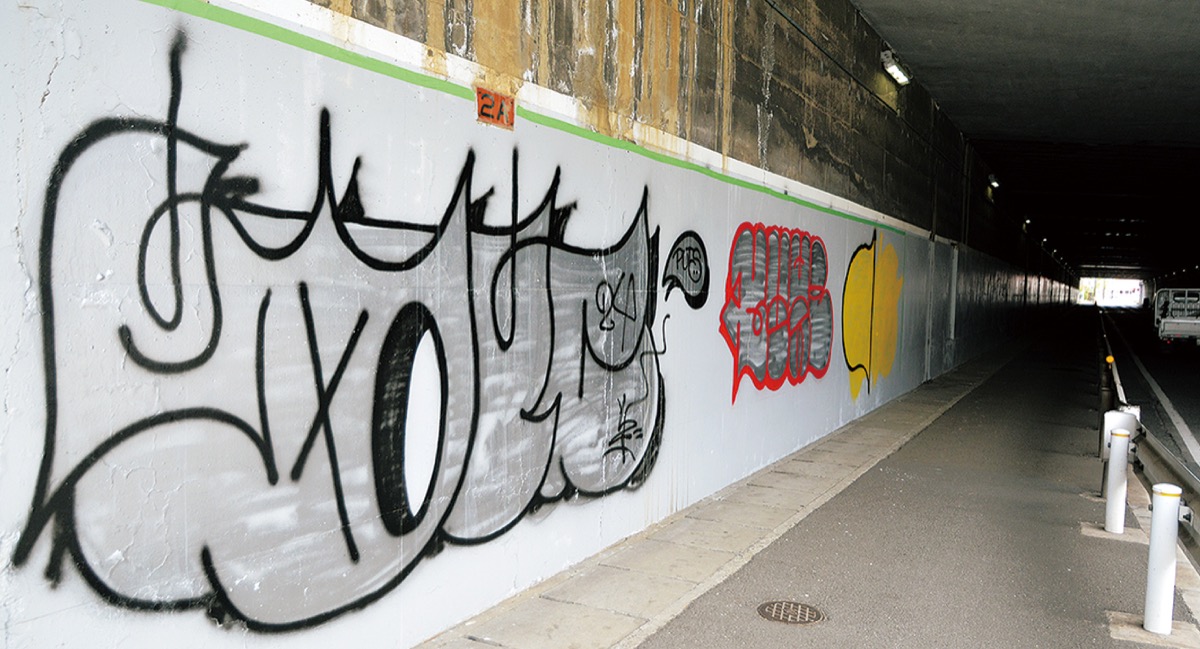 尻手黒川線・第4梶ヶ谷架道橋下のトンネルの壁に、地域住人らが消したはずの落書きが「復活」していた―。