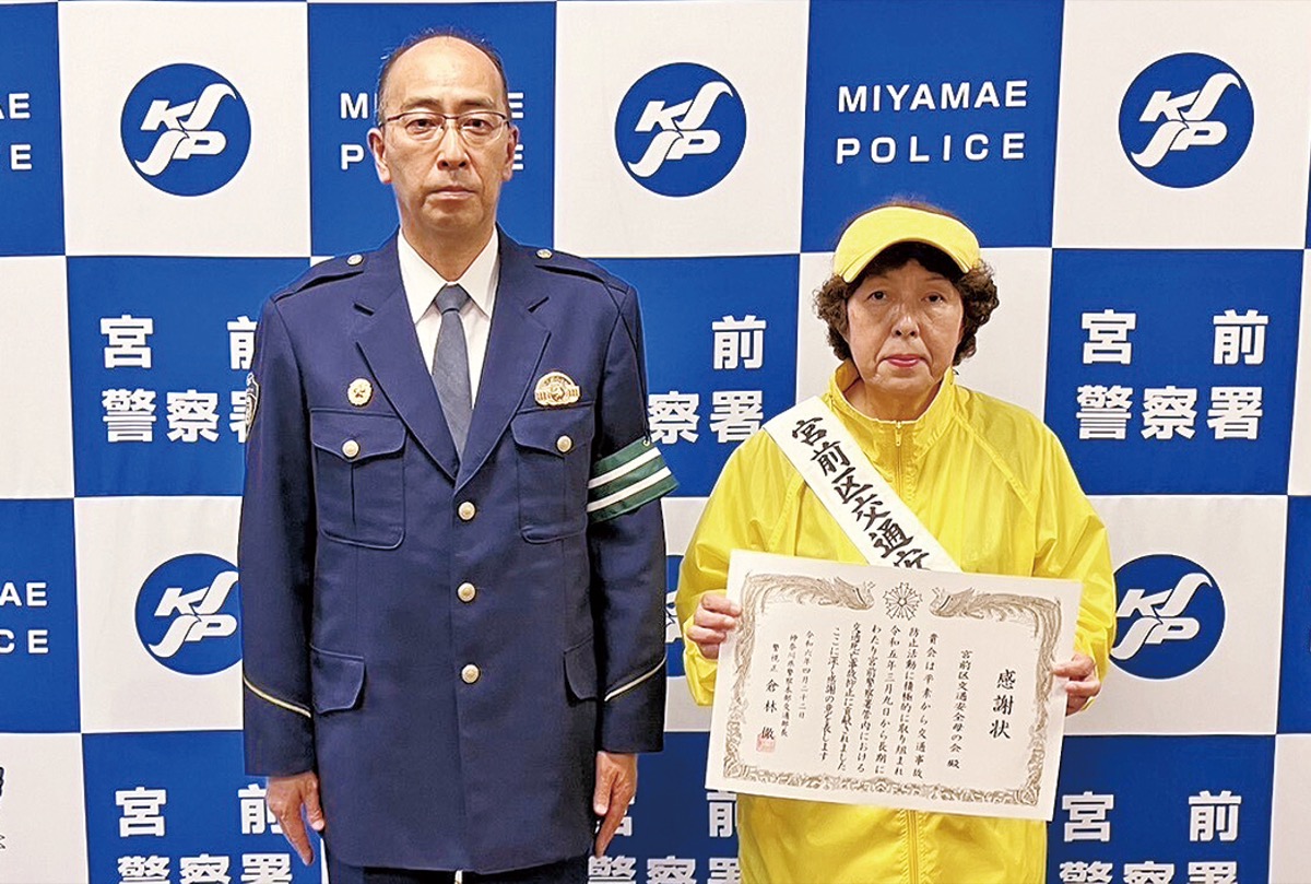 区内で2023年3月9日から長期にわたる死亡事故抑止に貢献したとして、表彰されることになった。同署での表彰式に中島会長は、同会トレードマークの黄色いジャケットとサンバイザーを身に着けて出席。鴨下圭一署長から感謝状を受け取った。鴨下署長は「日頃から交通安全にご協力いただき、ありがとうございます。今後ともよろしくお願いします」と言葉をかけた。中島会長は「先日も区内で交通死亡事故があったので、引き続き、事故を防ぐ活動に力を入れていきたい」と話していた。