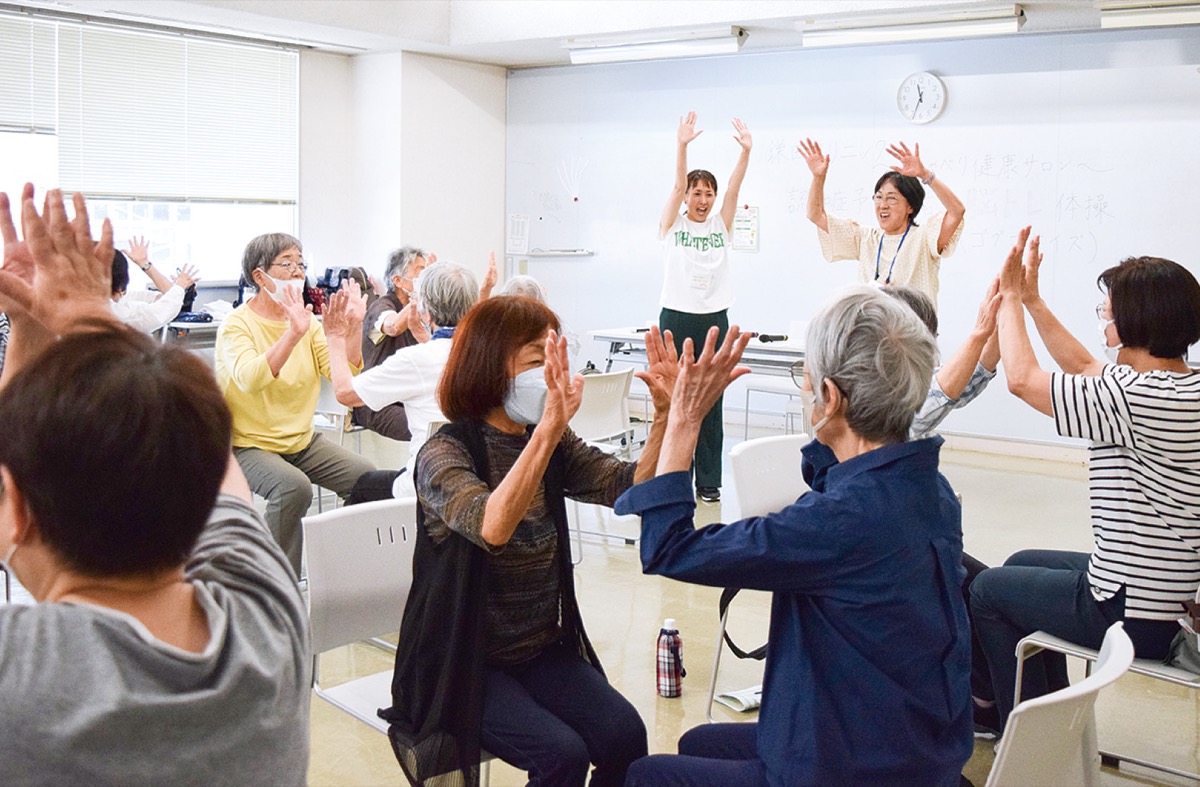 脳トレ体操は、県が展開する「コグニサイズ」に挑戦。左右の手で異なる動きや数字に合わせた反応に、参加者は苦戦しながらも楽しんでいた。終盤では「おしゃべりタイム」も設けられ、参加者同士が和やかな雰囲気で食生活について会話する場面も。以前も参加したという女性は「毎回勉強になることが多い」と笑顔を見せていた。