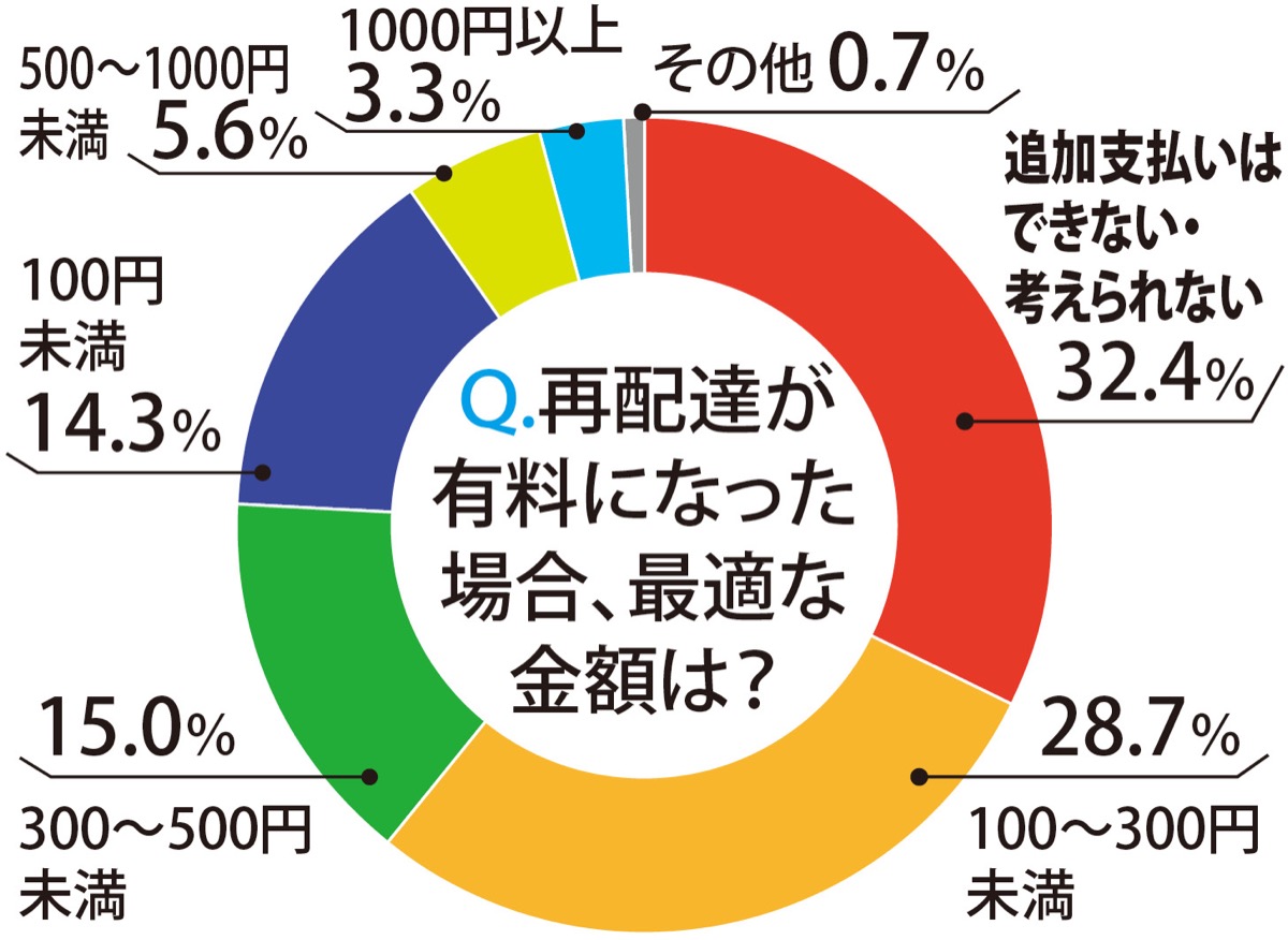 運送関係者からは「再配達には2回分の運賃として1000円以上は負担して欲しい」「置き配できる施設の充実や、不在の場合に受け取る側が自ら取りにくる制度を導入して欲しい」などの要望が挙げられた。