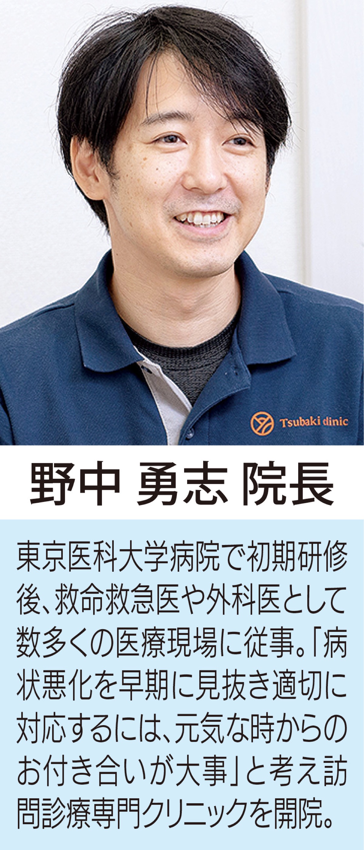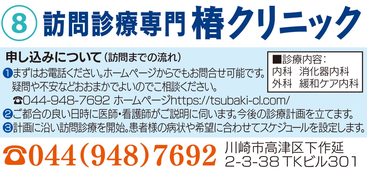在宅療養支援診療所でもある当クリニックは、宮前区などを訪問エリアとし、1年365日、24時間対応。できる限り速やかに往診が受けられる体制を整えています。また訪問先において処方箋を発行しますので、薬局へご家族の方が取りに行くこともできますし、配達を行っている薬局の紹介なども行っています。