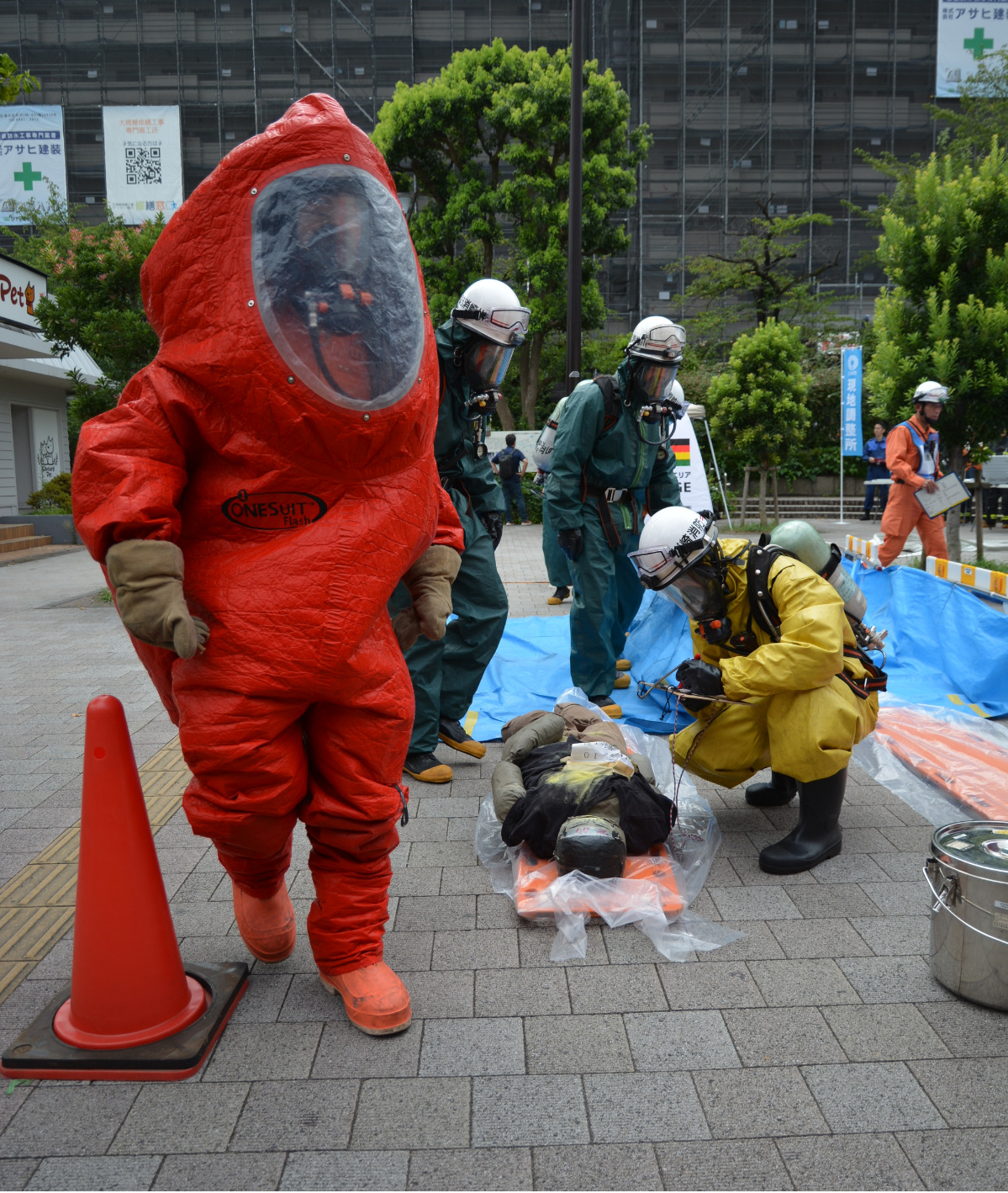 訓練は駅のホーム上で男がスプレーを噴射し、スプレーを浴びた複数人が不調を訴えている想定で行われた。駅員は避難誘導と情報収集を実施。連絡を受けて現場に到着した4者で情報を共有。特殊な防護服に身を包んだ特別高度救助隊員が負傷者の救出にあたり、消防隊が有害な化学物質を取り除く除染作業を行い、傷病者は救急隊に引き継がれた。さらに、警察官が犯人を制圧するなど、関係機関による一連の作業を確認し、緊急時の連携強化を図った。