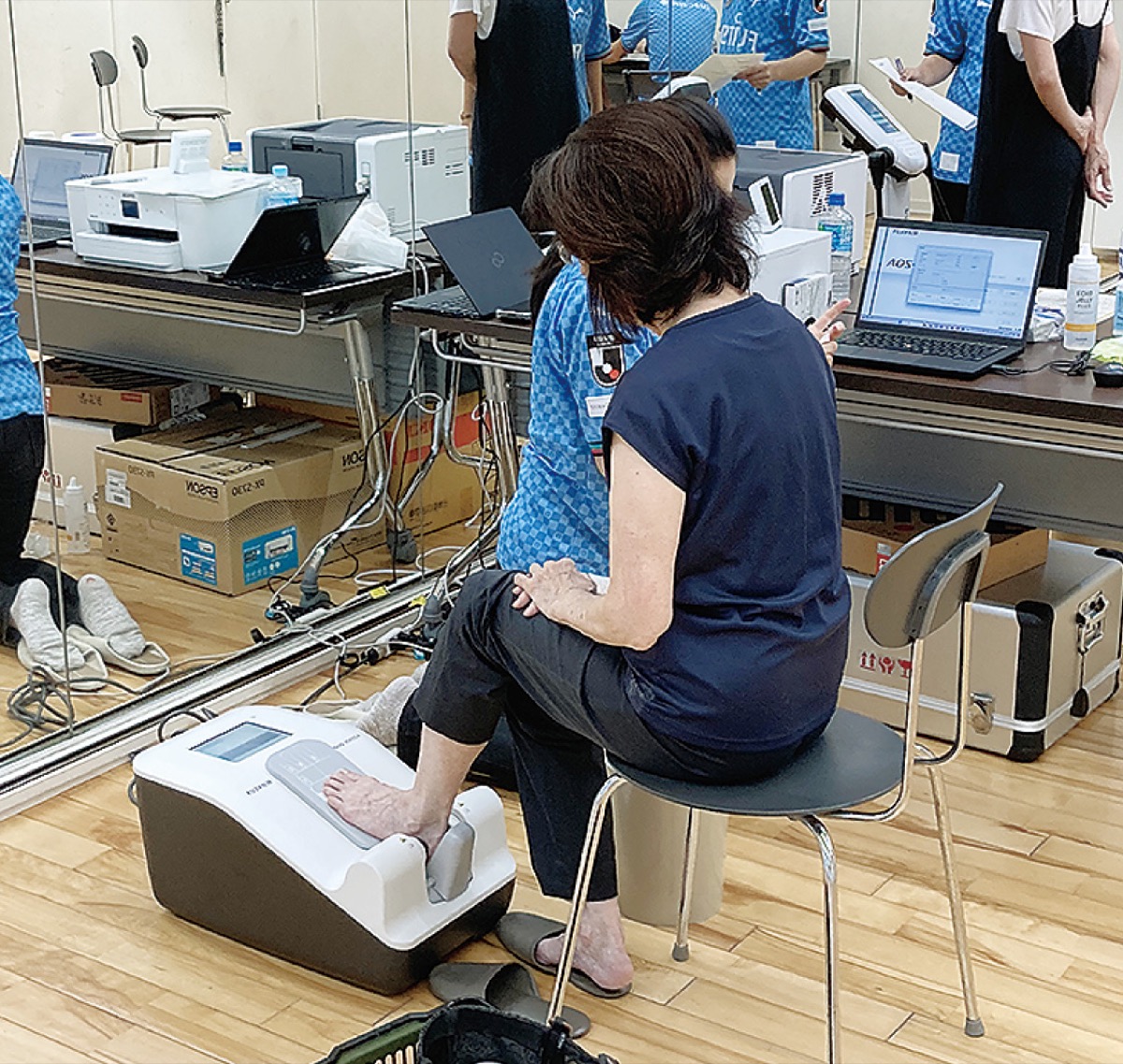 このイベントは、宮前区との連携事業として、簡単な測定で体を数字で見える化し、健康状態を把握してもらおうと実施された。参加者は、部位別の筋肉量、体脂肪量を測定する「体成分分析測定」、超音波で測定し同年齢の骨密度と比較を行う「超音波骨密度測定」、老化物質を測定する「体内糖化測定」を通じて、身体の健康度を数値化し、専門家からアドバイスを受けた。
