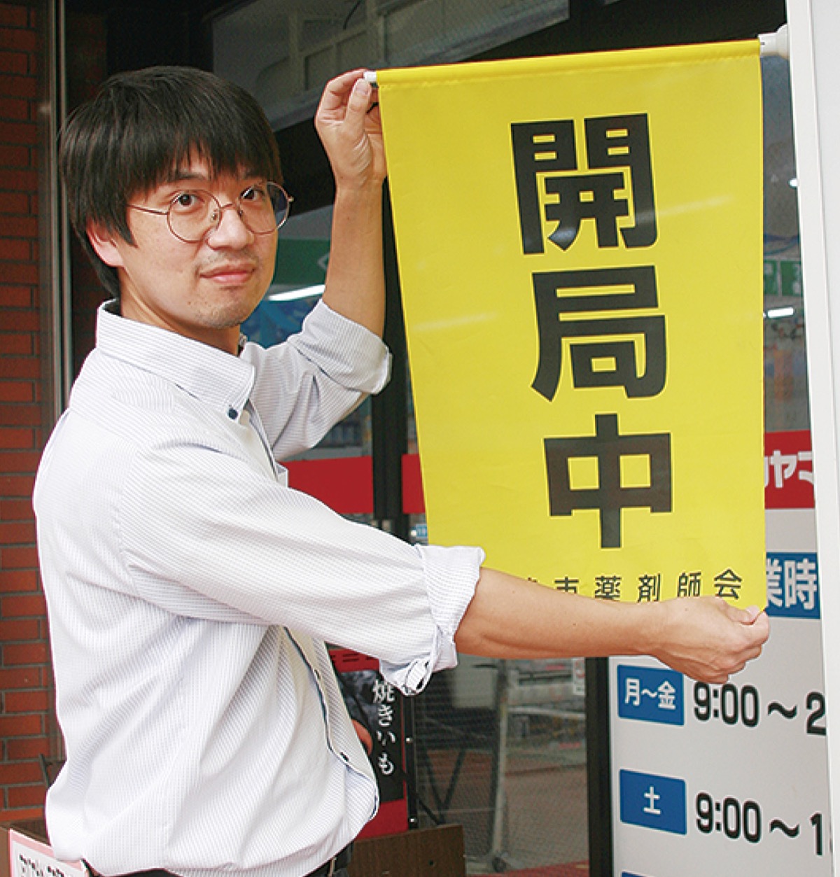 この取り組みは「災害時に薬局が営業しているか分かりづらい」という市民の声を受けて始めたもので、防災の日の9月1日と、東日本大震災の起きた3月11日に行っている。