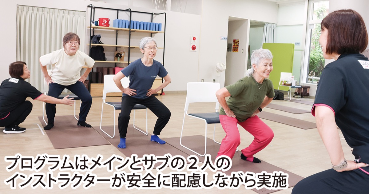 科学的根拠に基づいた筋力アップトレーニングをはじめ、全6種類の運動プログラムを用意し、一人ひとりに最適な内容を提案してくれる。インストラクターの指導を受けながらグループで楽しく参加できるので、健康づくりや体力づくり、フレイル予防にぴったり。
