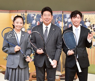 宮前区出身のスカッシュプレーヤー、安成翔太さん(22)と西尾舞洋(まひろ)さん(16)が10月18日、福田紀彦市長を表敬訪問し、12月に開かれる世界大会出場を報告した。