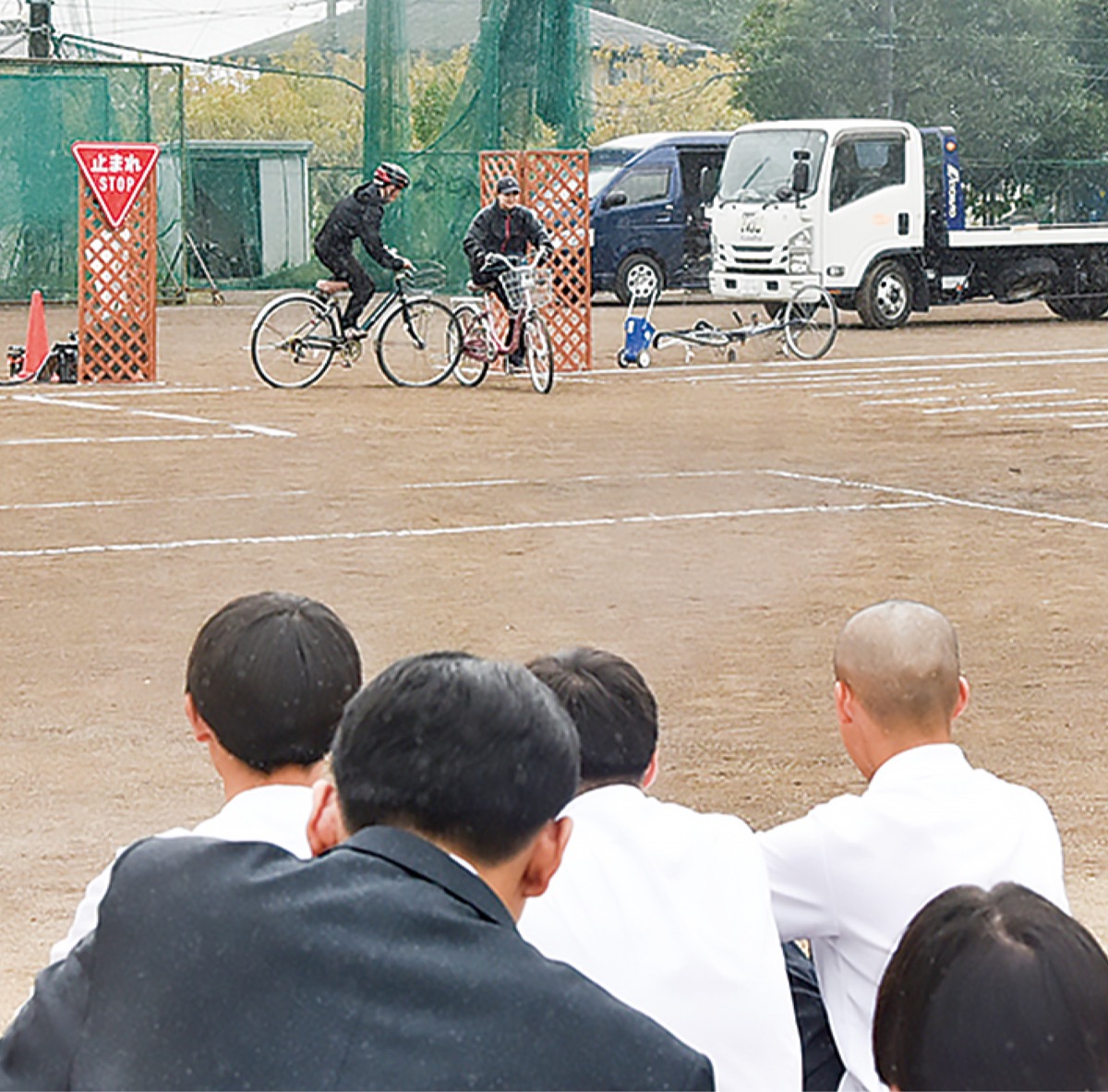 この日は、雨が降り始め、教室は途中で中止となったが、生徒は、自転車の点検方法などについても学んだ。