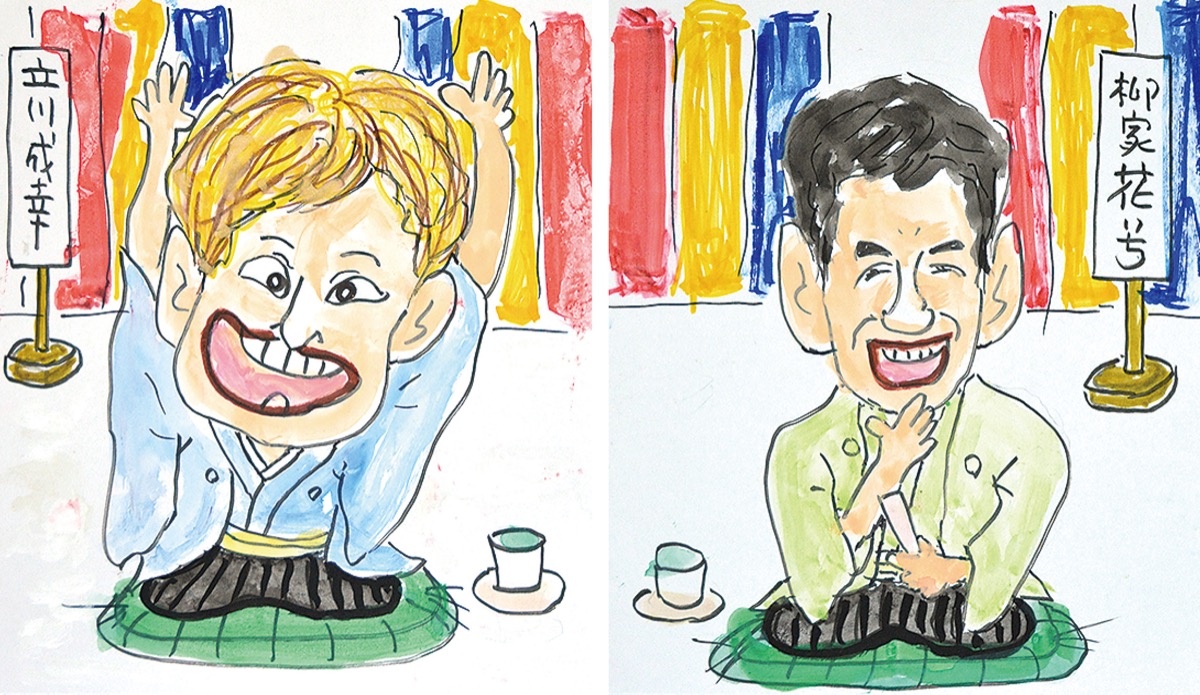 親交のある黄桜酒造の河童のキャラクターで名を馳せた小島功さんの最後の弟子である漫画似顔絵家・畳ショージさん(82/本名・塩田捷治)=東有馬在住=にご縁をいただきました。塩田さんは2年前、寺家ふるさと村=青葉区=で個展を開催した際に、柳家花いち師匠と出会ったそうです。花いち師匠は、柳家花緑師匠の弟子として、古典落語に加え、花いちワールドが炸裂する自作の新作落語も手がける二刀流。日々古典を磨く傍ら、定期的に新作のネタおろしを続け、精力的に活動しているそうです。